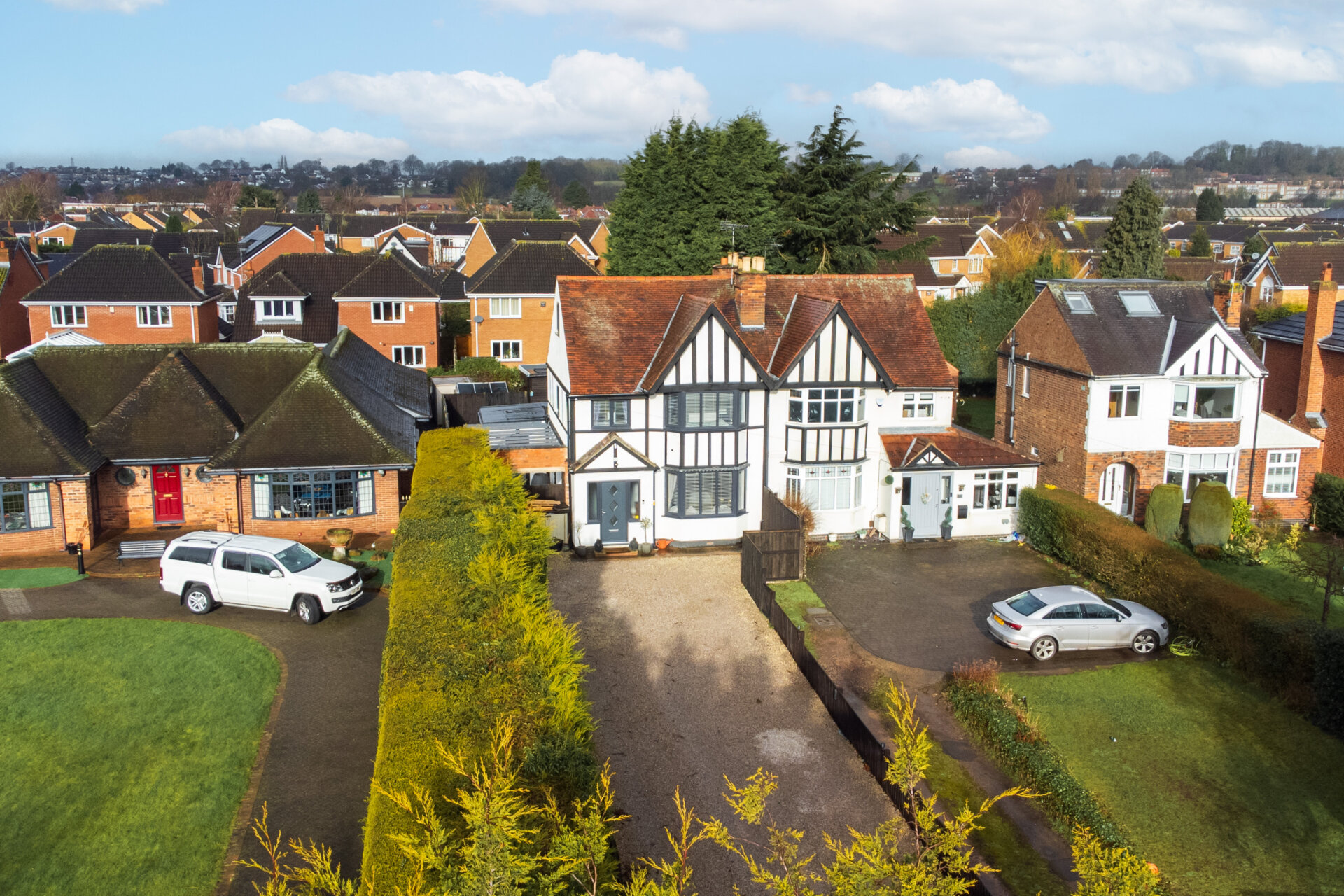 The outside space of this property is just as impressive as the interior, with thoughtful landscaping adding to the charm of the home. To the front, a large gravelled driveway provides ample parking space, while hedge and fenced boundaries ensure privacy. Double gates at the side lead to a pergola area, offering a versatile space for a hot tub or seating area for outdoor relaxation. The rear garden features a patio area with a dwarf brick wall, transitioning seamlessly into a well-maintained lawn with gravelled borders. A path leads to the bottom of the garden where a large summerhouse/shed awaits, providing additional storage or a peaceful retreat. The garden is privately enclosed with fenced boundaries, offering a safe and tranquil outdoor environment for both children and pets to enjoy.