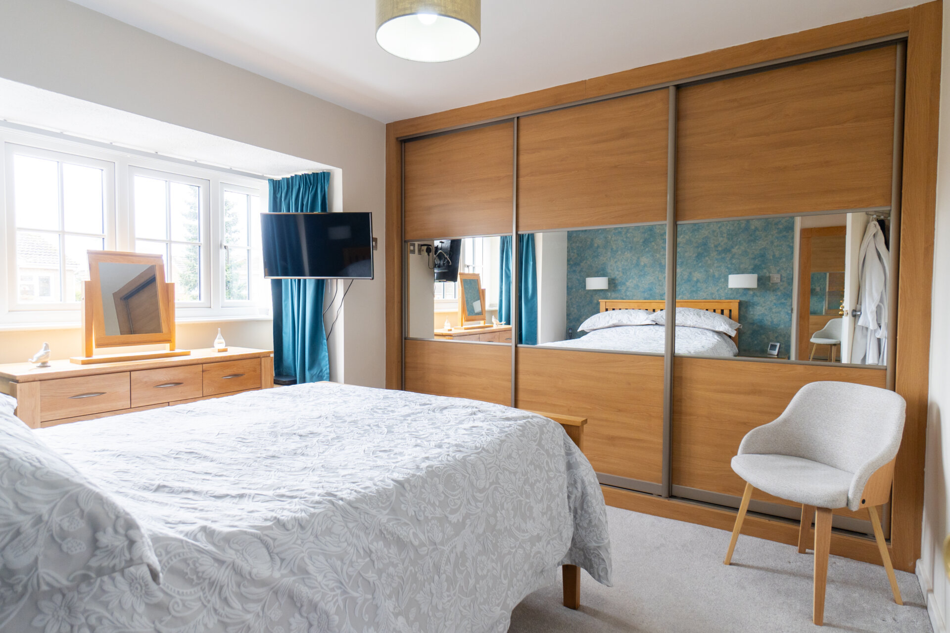 Built-in wardrobes, UPVC double glazed window to the front TV point and door to