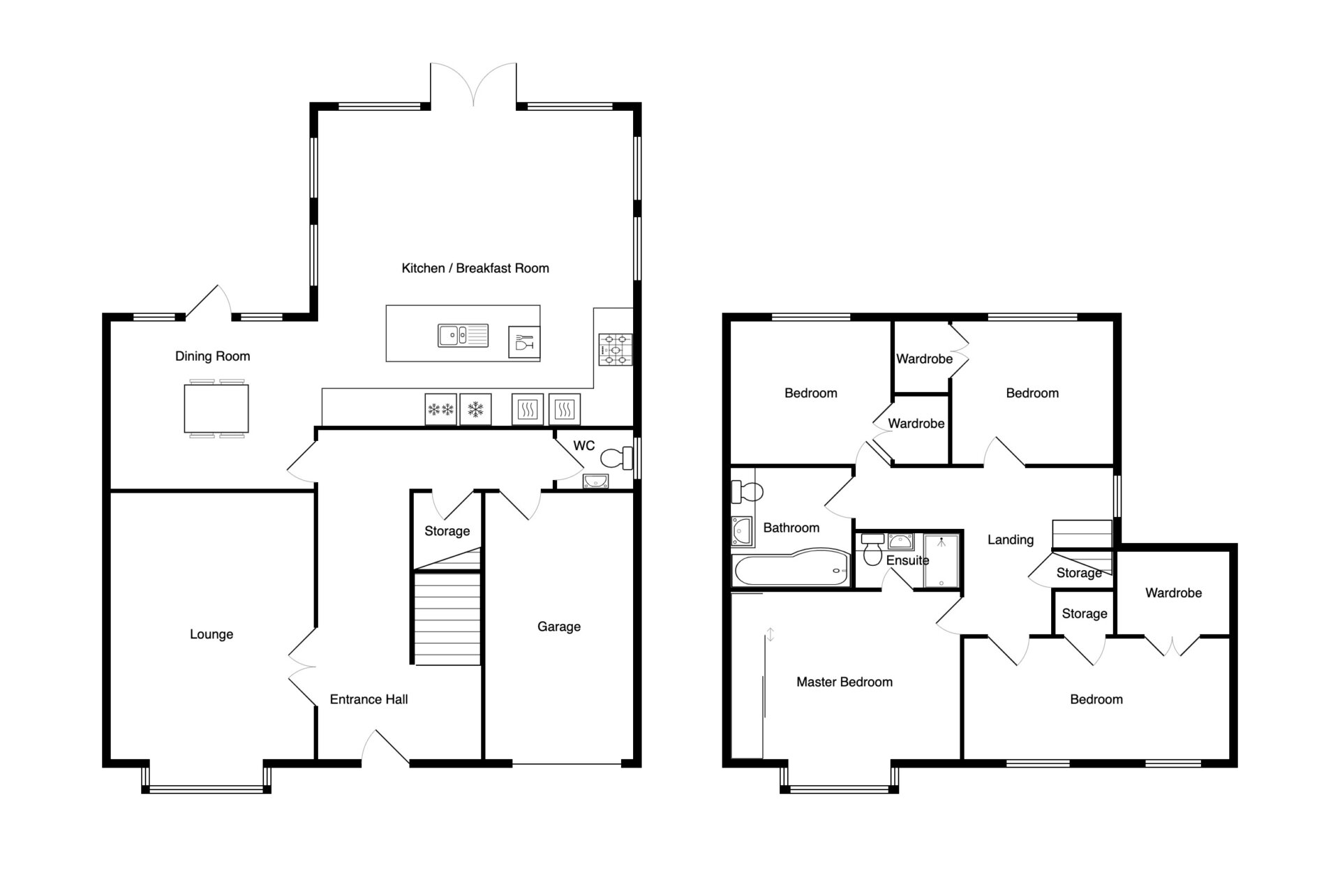 Upstairs, you'll find four bedrooms, with the master benefiting from an en-suite shower room, while the second bedroom features a sizeable walk-in wardrobe.
