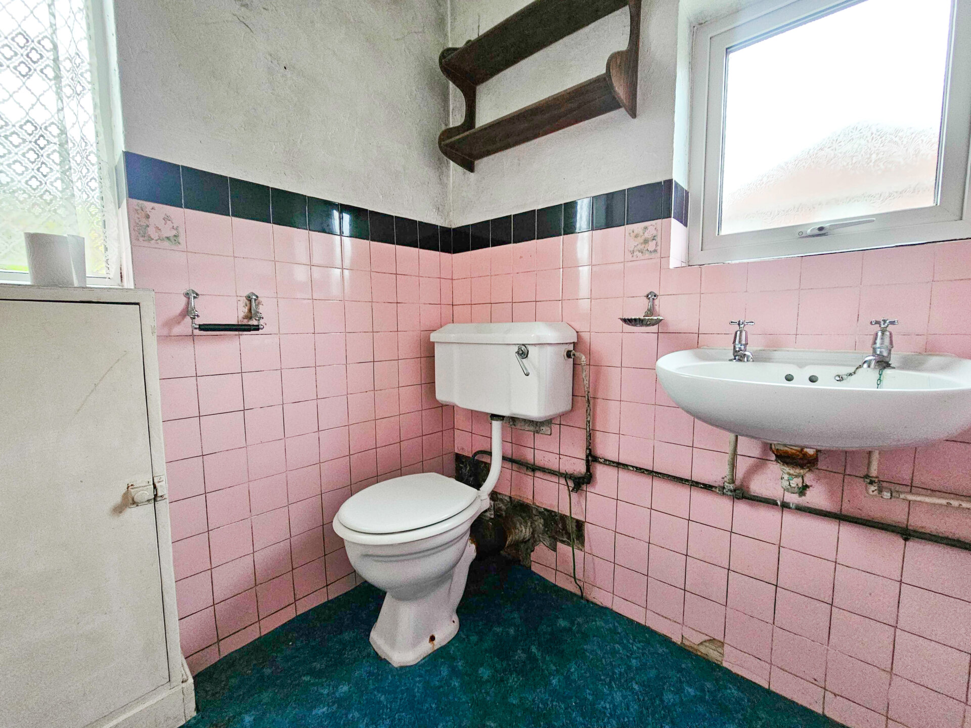 Double glazed window to the front elevation, low flush WC and wash hand basin.