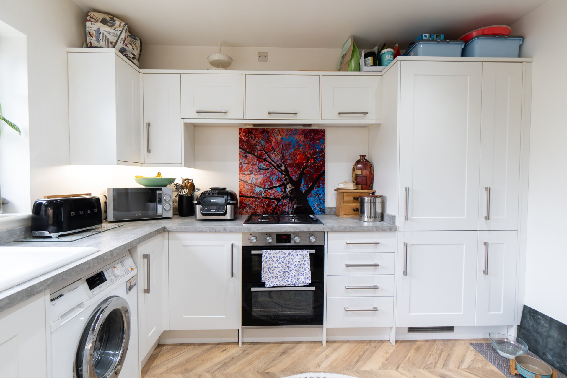 Upon entry, a welcoming hallway leads to the staircase accessing the first floor, as well as doors opening to the lounge/dining room and the newly appointed kitchen, complete with integrated appliances.