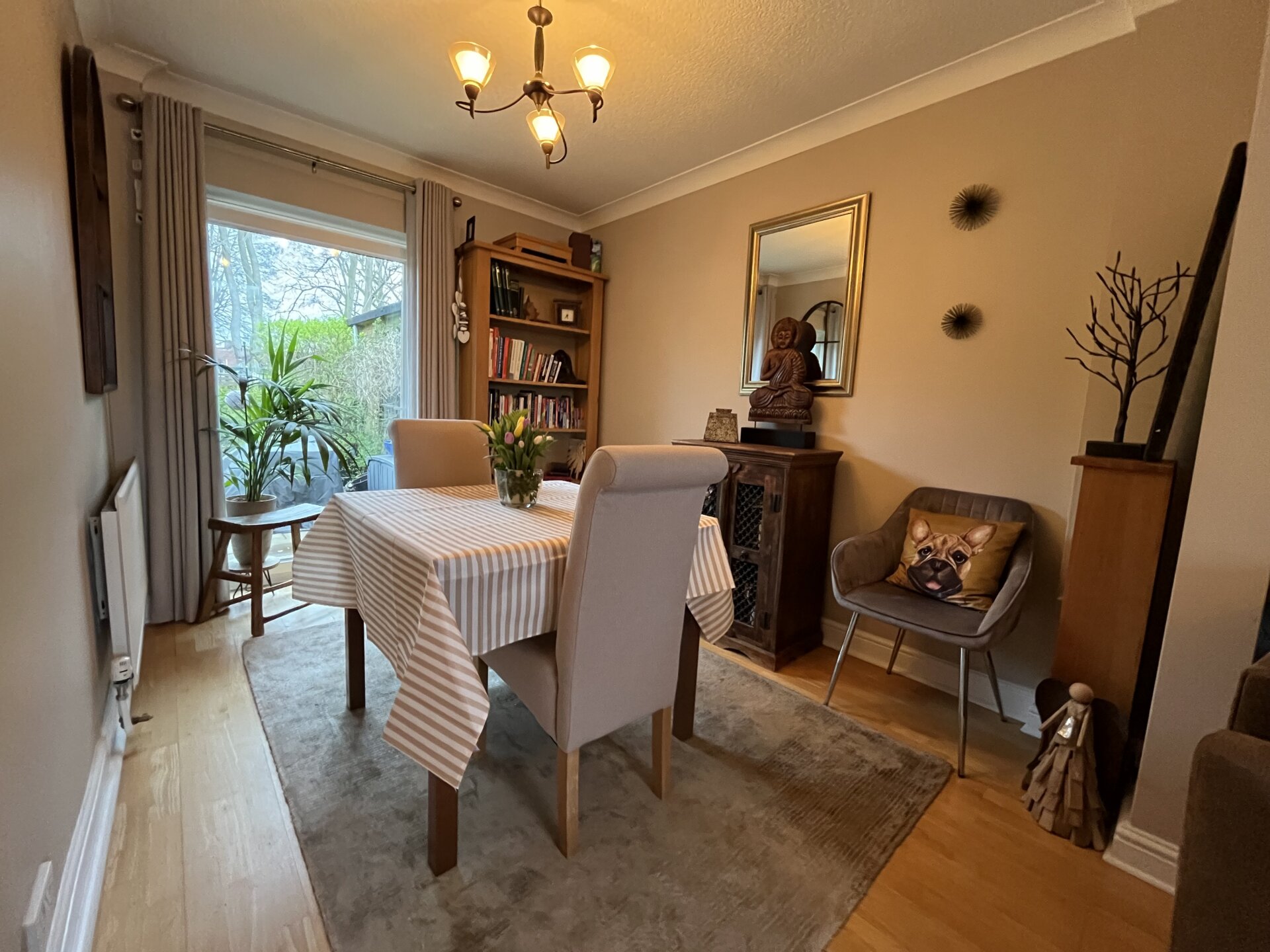 UPVC double glazed door with shutter to the garden, coving to the ceiling, radiator and solid wood floor