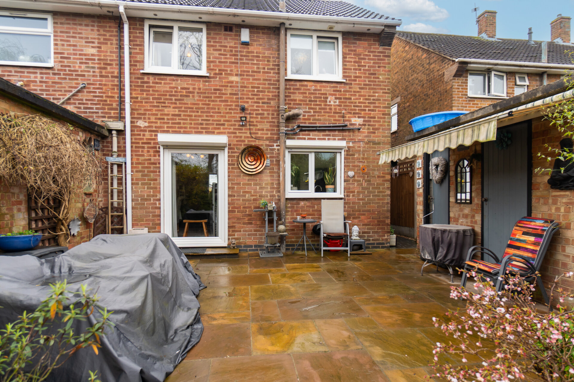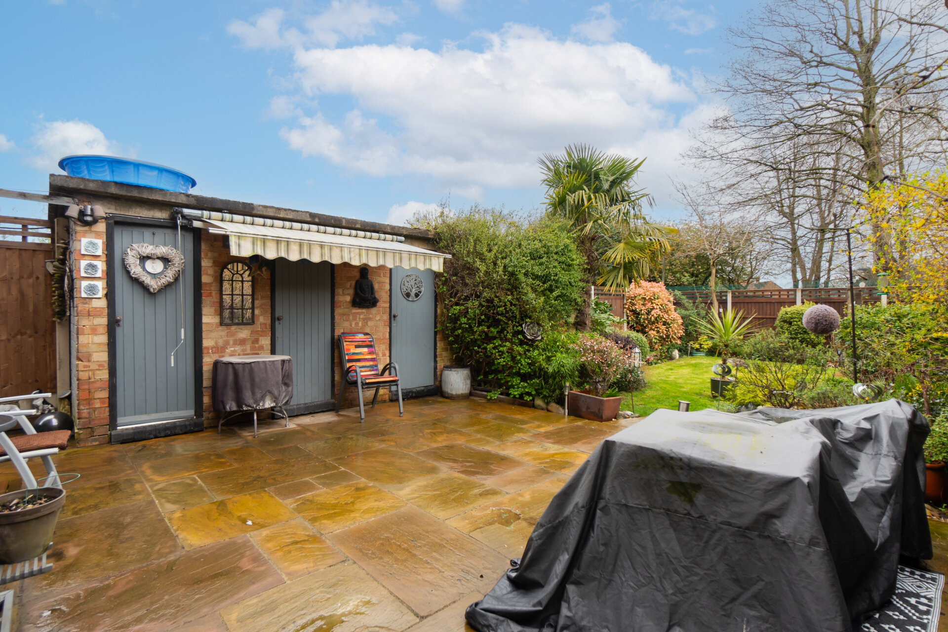 Upstairs, three generously proportioned bedrooms await, alongside a conveniently located shower room. The rear garden, of ample size, features three brick storage units, two equipped with power outlets, and one accommodating a functional WC.
