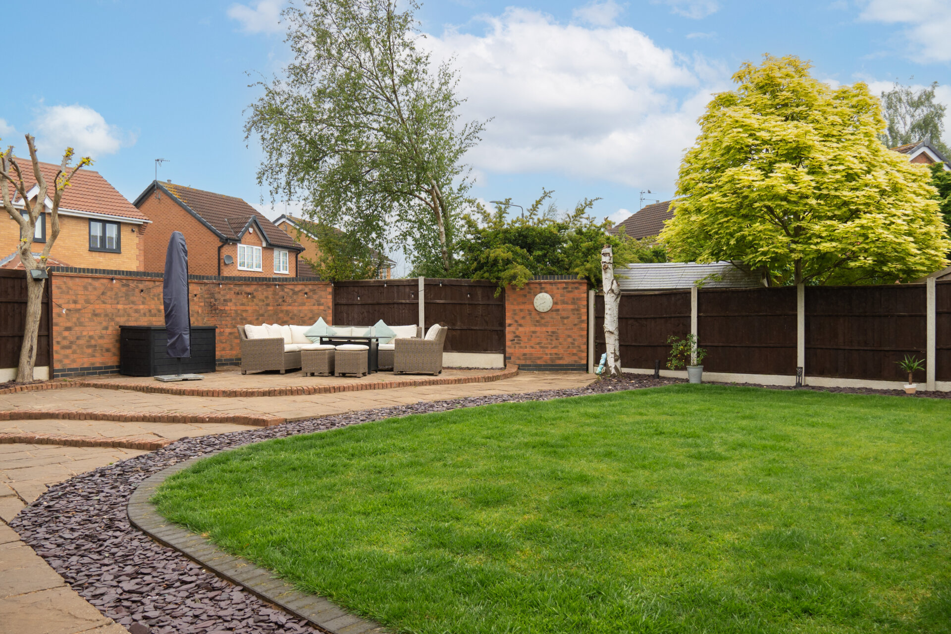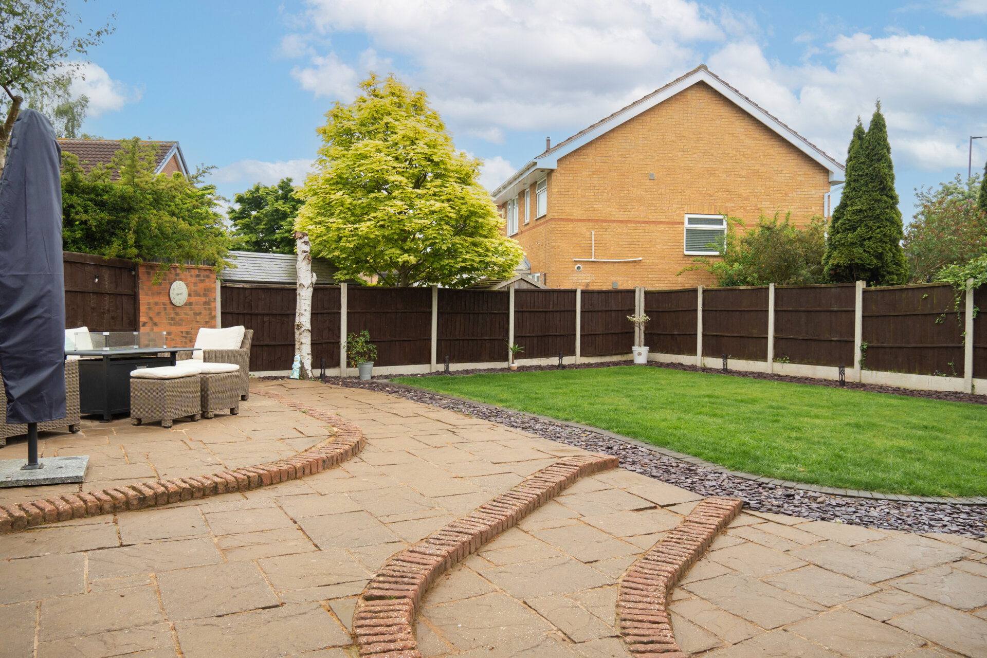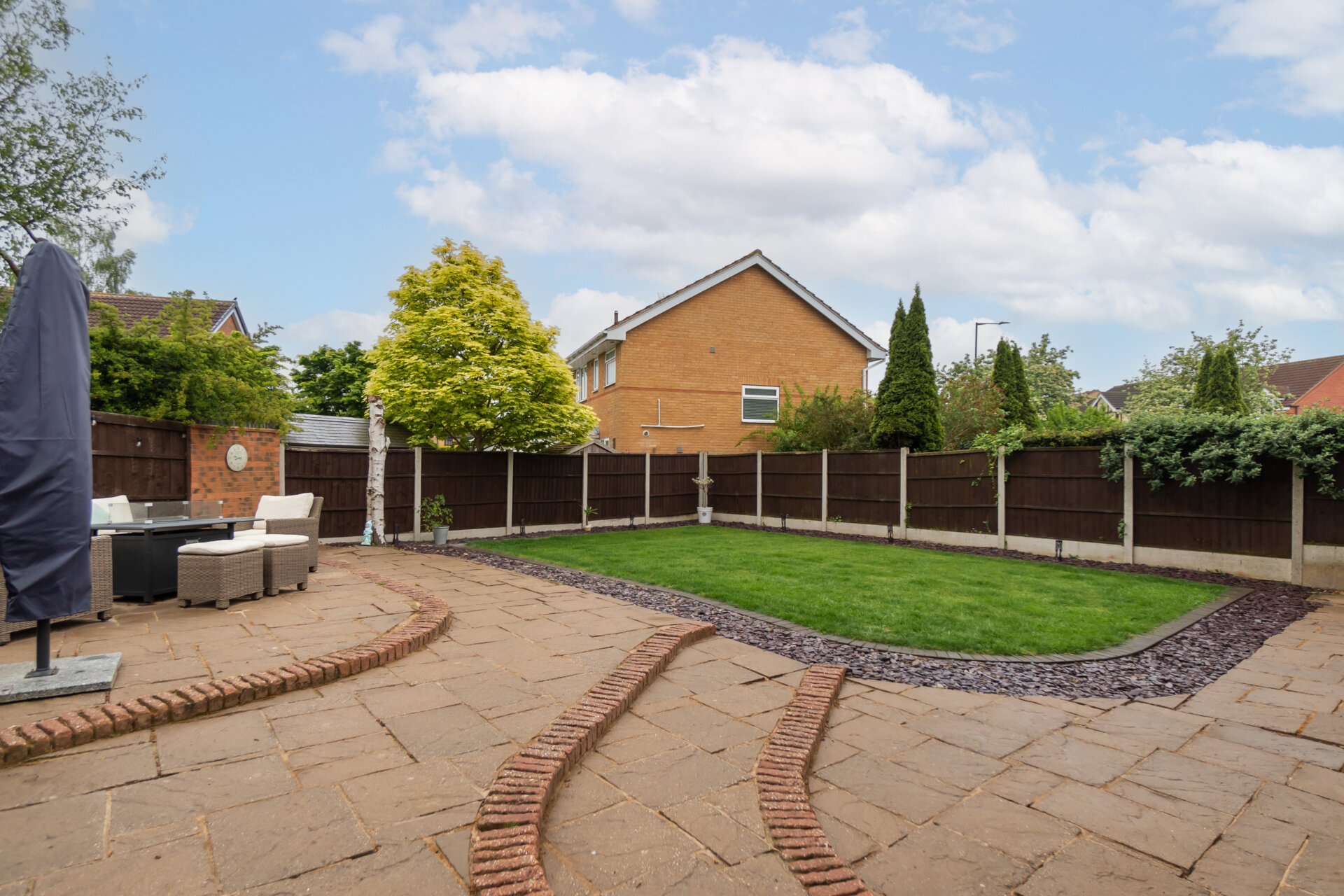 The outside space of this property is an absolute delight, perfectly complementing the stylish interior. Situated on a corner plot, the property offers access around the entire perimeter, with a Prescrete and Resin driveway to the front providing parking space for two cars, complete with an electric car charging point. A gravel area on the right further enhances the parking options, all enclosed by a brick wall boundary and wrought iron fence, ensuring privacy and security. The rear garden is a haven of tranquillity, featuring a large lawn bordered by grey slate chippings, an expansive patio for al fresco dining, and ample space for outdoor entertaining. Privacy is maintained by a combination of brick wall and fenced boundaries, while a storage area on the left side provides practicality. An outside tap adds to the convenience of this outdoor oasis, inviting residents to relax and enjoy the peaceful surroundings in style.