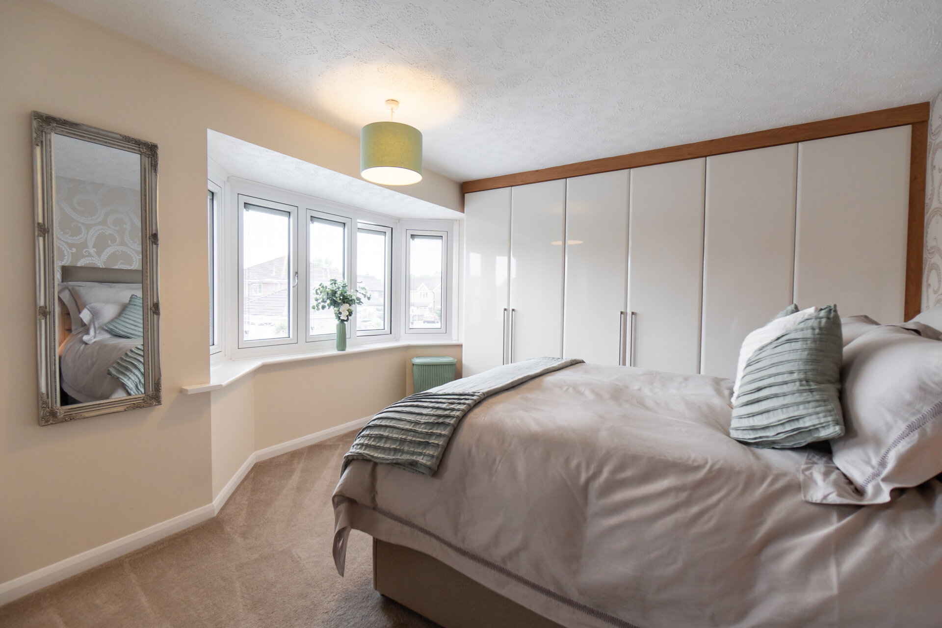 Built-in wardrobes, Double Glazed bay window to the front with internal blinds and separate window to the front with internal blinds, radiator and door to