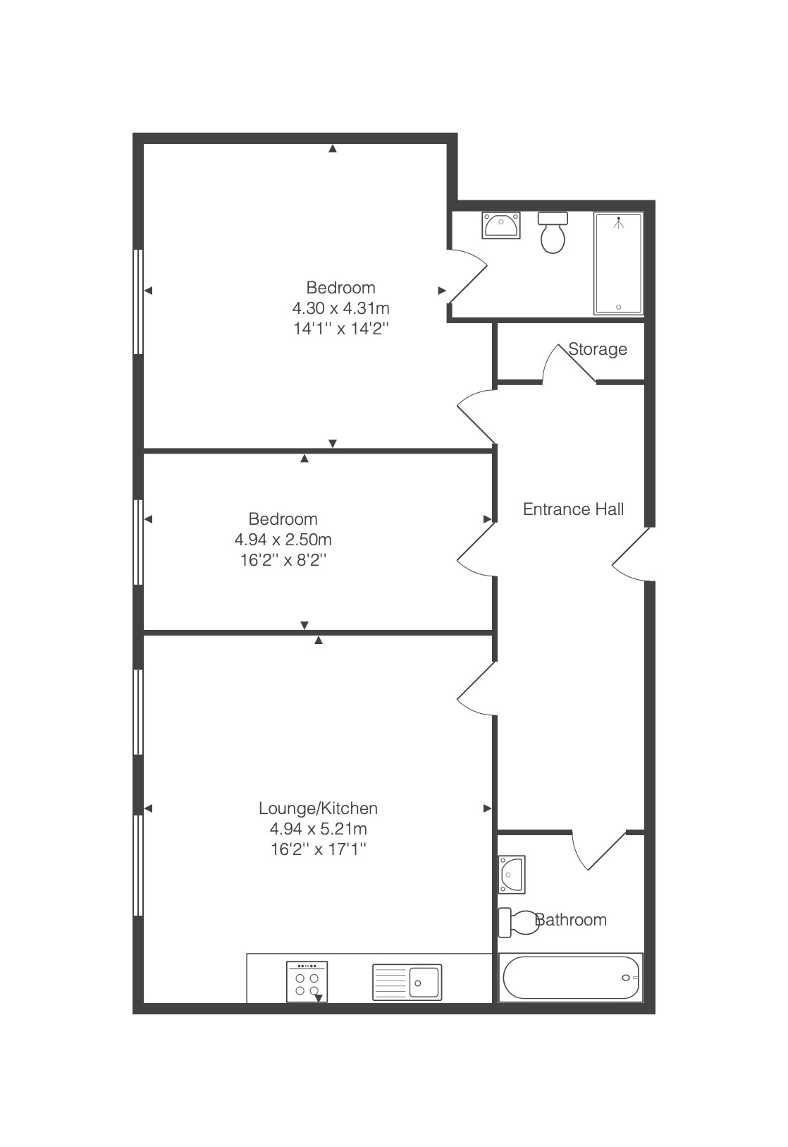 Bedroom Two 8' 6" x 17' 1" (2.59m x 5.21m)