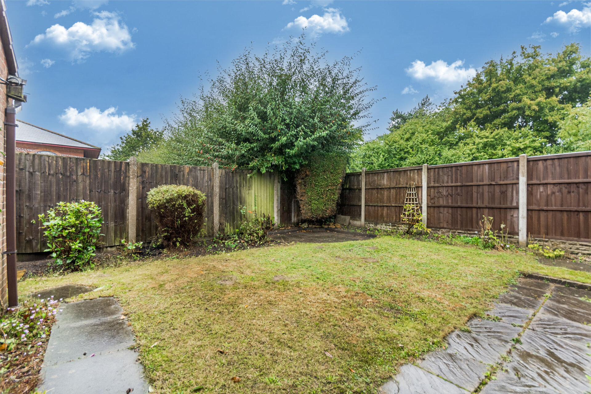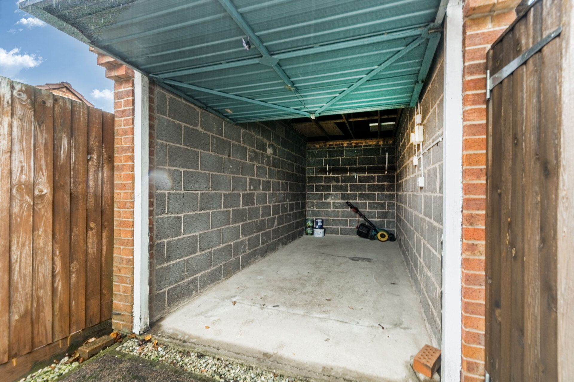 The front of the property features a well-maintained lawn with a lovely bedding area, complemented by a tar macadam driveway that leads seamlessly to the detached garage. Meanwhile, a gate provides access to the rear garden, offering two patio areas and a green expanse of lawn, all privately enclosed by fenced boundaries. Enjoy the flexibility of access around the entire garden, with an additional gate leading to Fields Farm Road. The detached garage itself, measuring 16'8 x 7'4, features an up and over door, as well as light and power, providing practical storage solutions for vehicles and equipment.