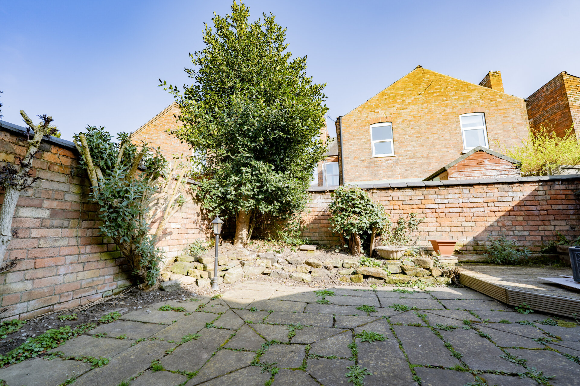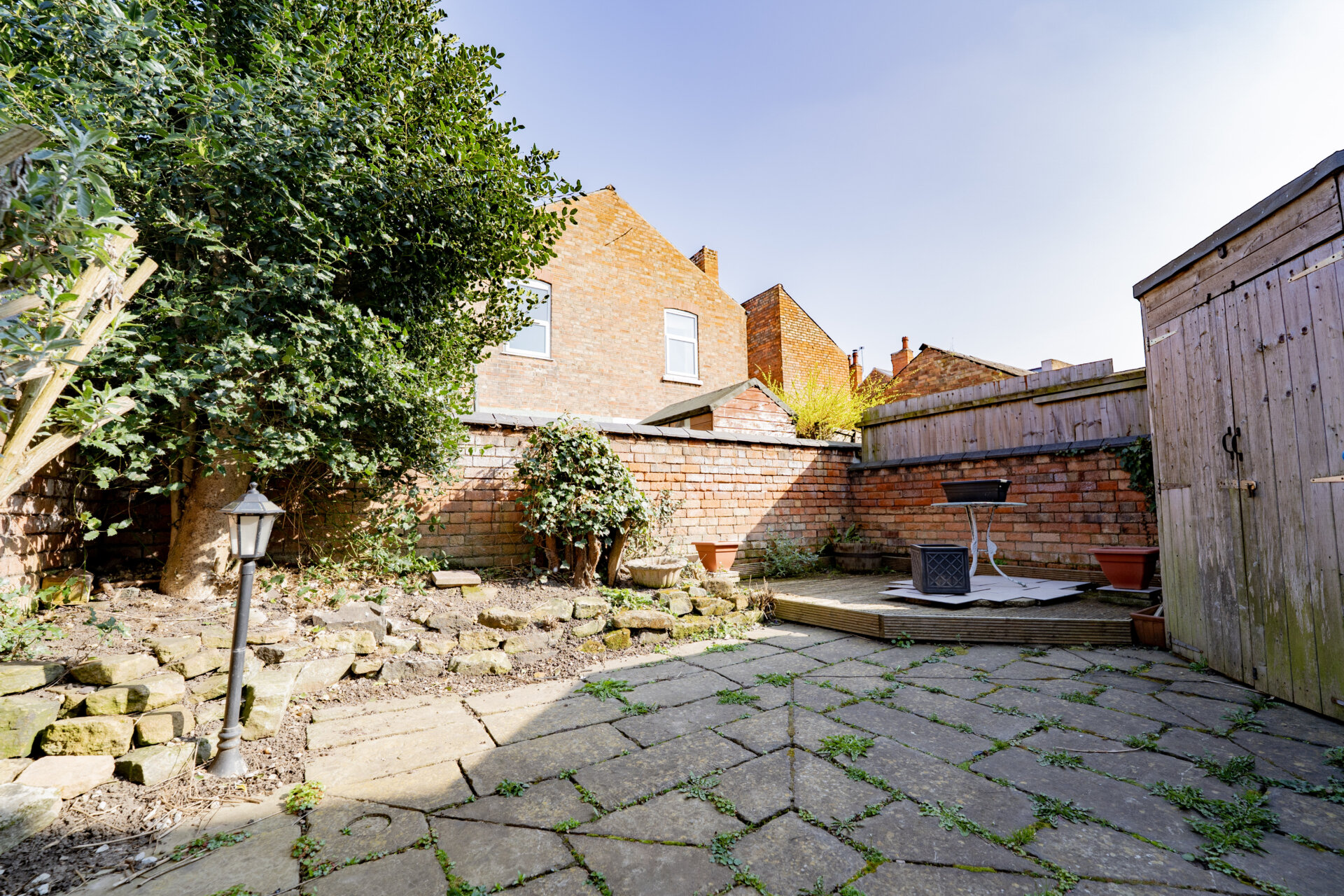 The outside space of this property features a gate at the side leading to a well-designed rear garden that has been thoughtfully created for low maintenance living. With walled boundaries providing privacy, residents can enjoy peaceful moments in a secluded and serene setting. The garden also includes a garden shed for storage purposes, power sockets for added convenience, and an outside tap for easy access to water.