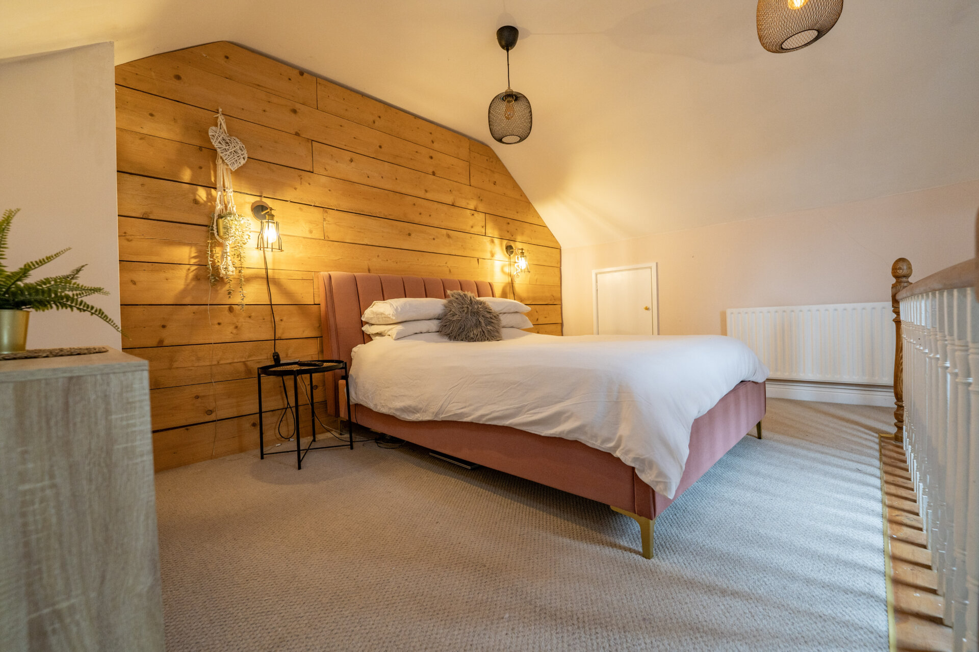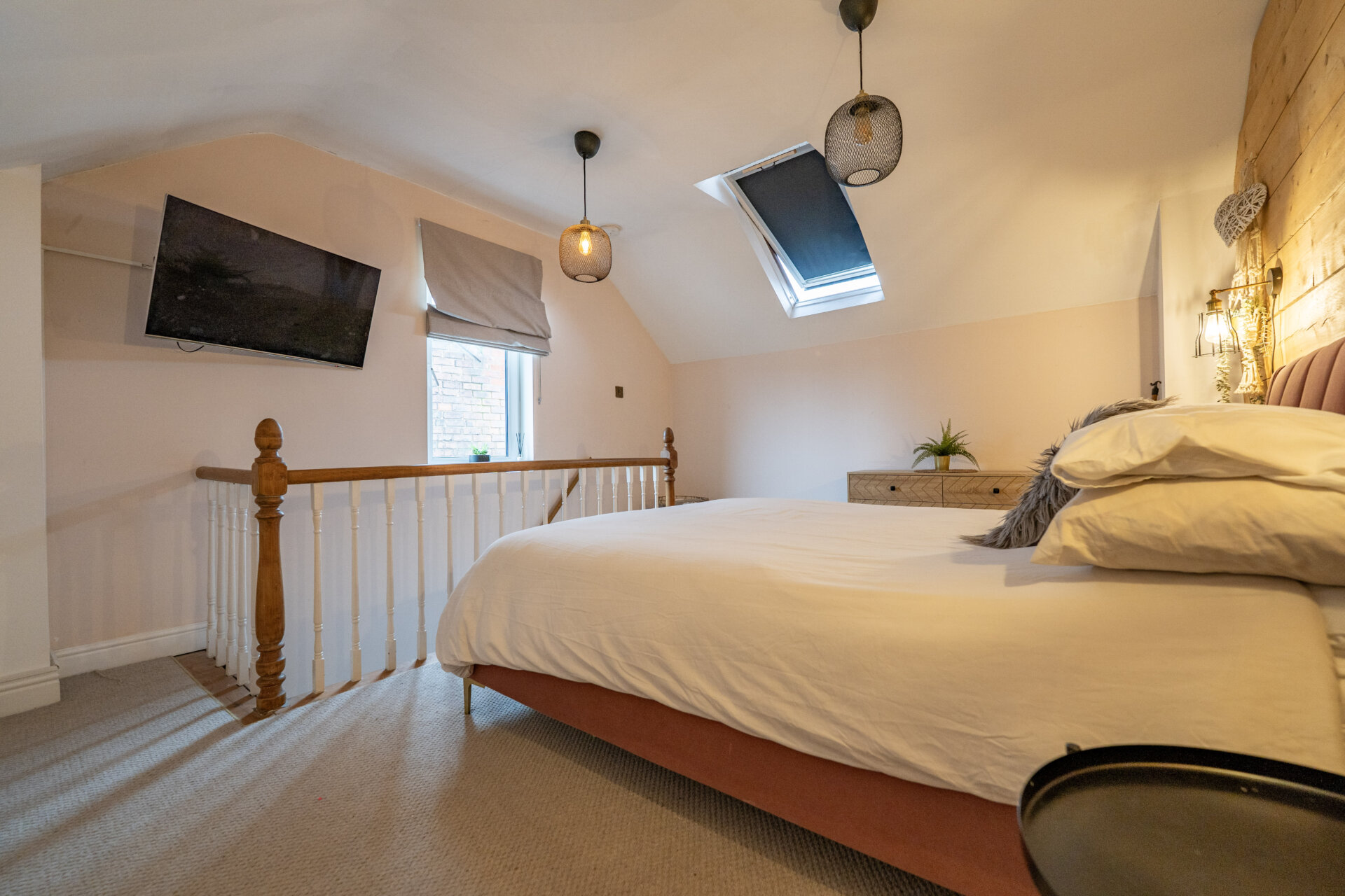 UPVC double glazed window and Velux window, radiator and storage in the eaves.