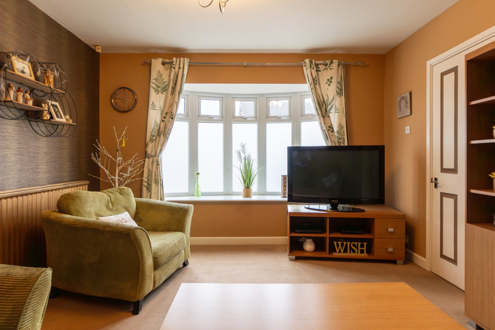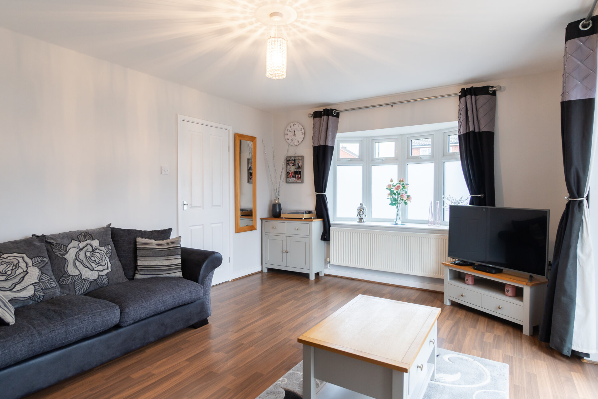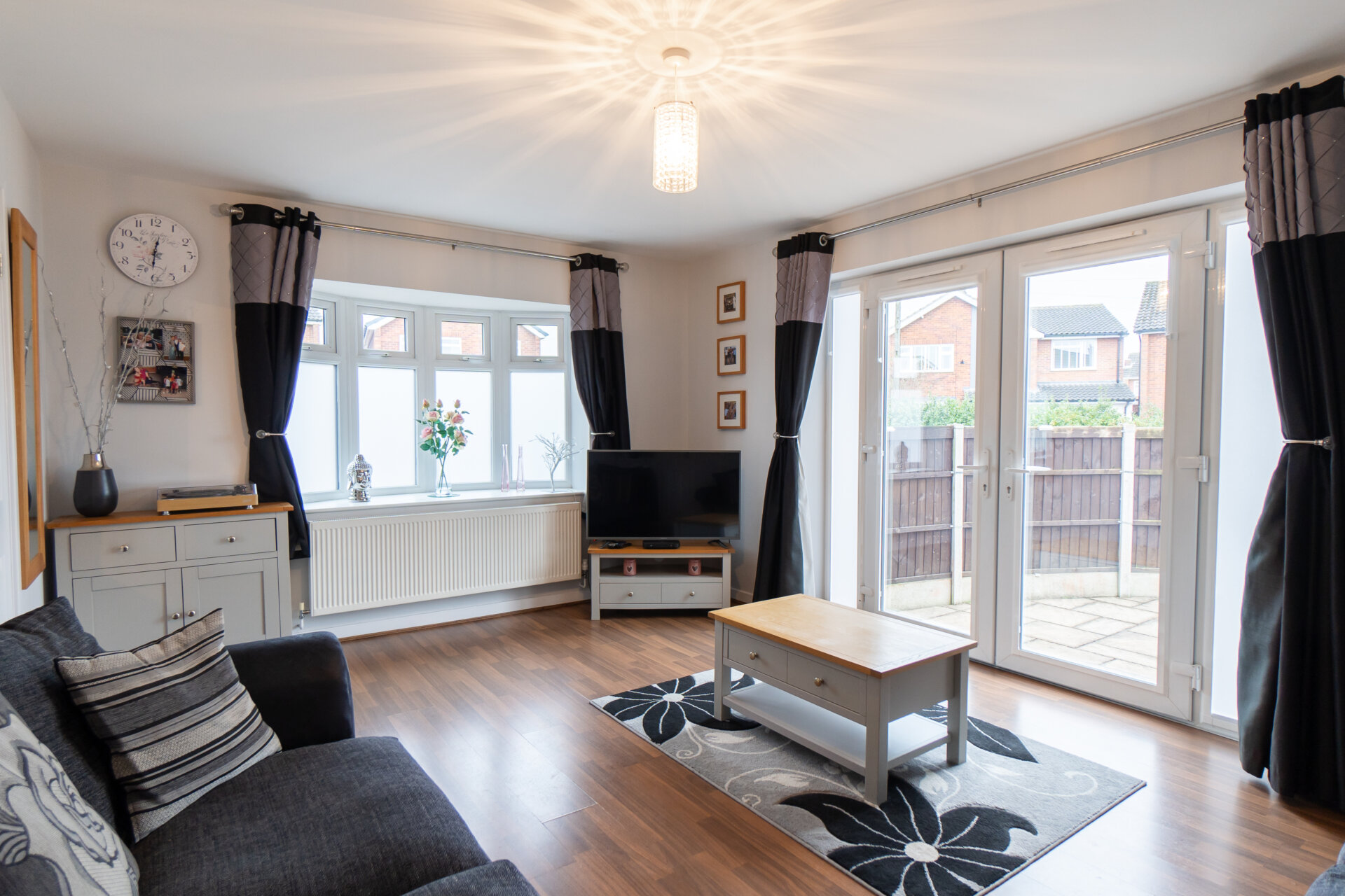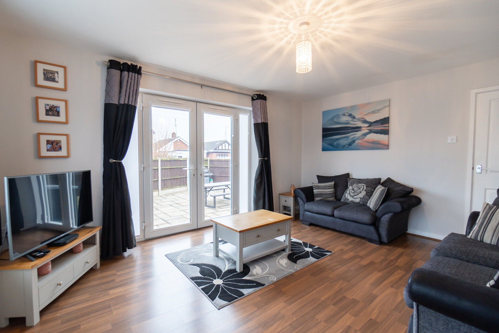 UPVC double glazed window to the front, laminate floor, UPVC French Doors to the rear garden, radiator and TV point.