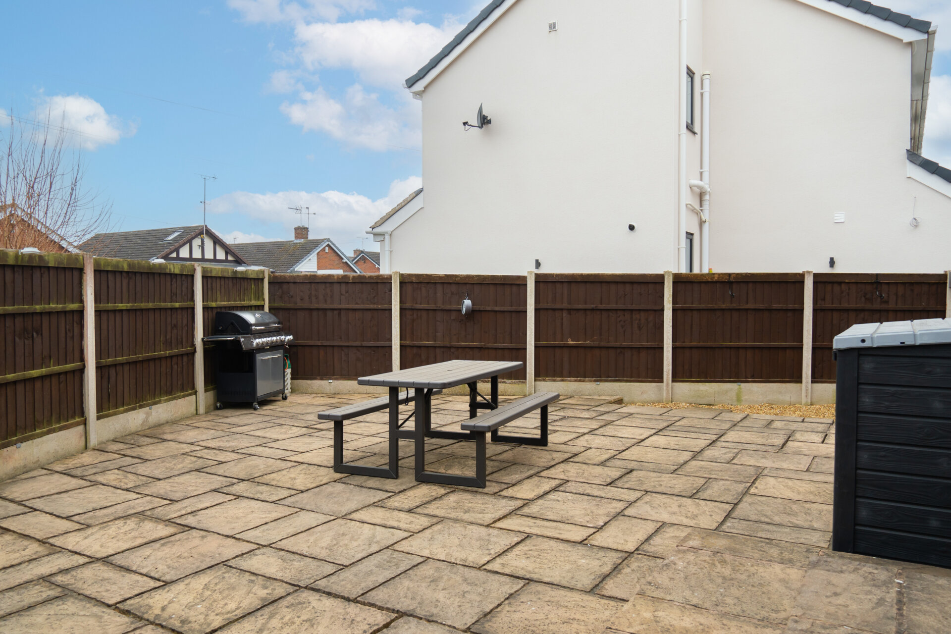 The well-appointed kitchen, situated at the rear, provides a seamless flow to the dining room, creating the possibility of a delightful kitchen-diner. The property's layout allows for easy circulation, and the garden at the rear and right-hand side, cleverly divided into two sections, offers versatility. Whether maintaining the current configuration, expanding off-road parking (currently accommodating at least four vehicles), or integrating the green space into the side garden, featuring an expansive patio, the options are aplenty.