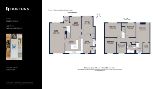 First Floor: Landing, master bedroom with dressing room and en-suite shower room, four additional bedrooms, and a family bathroom.