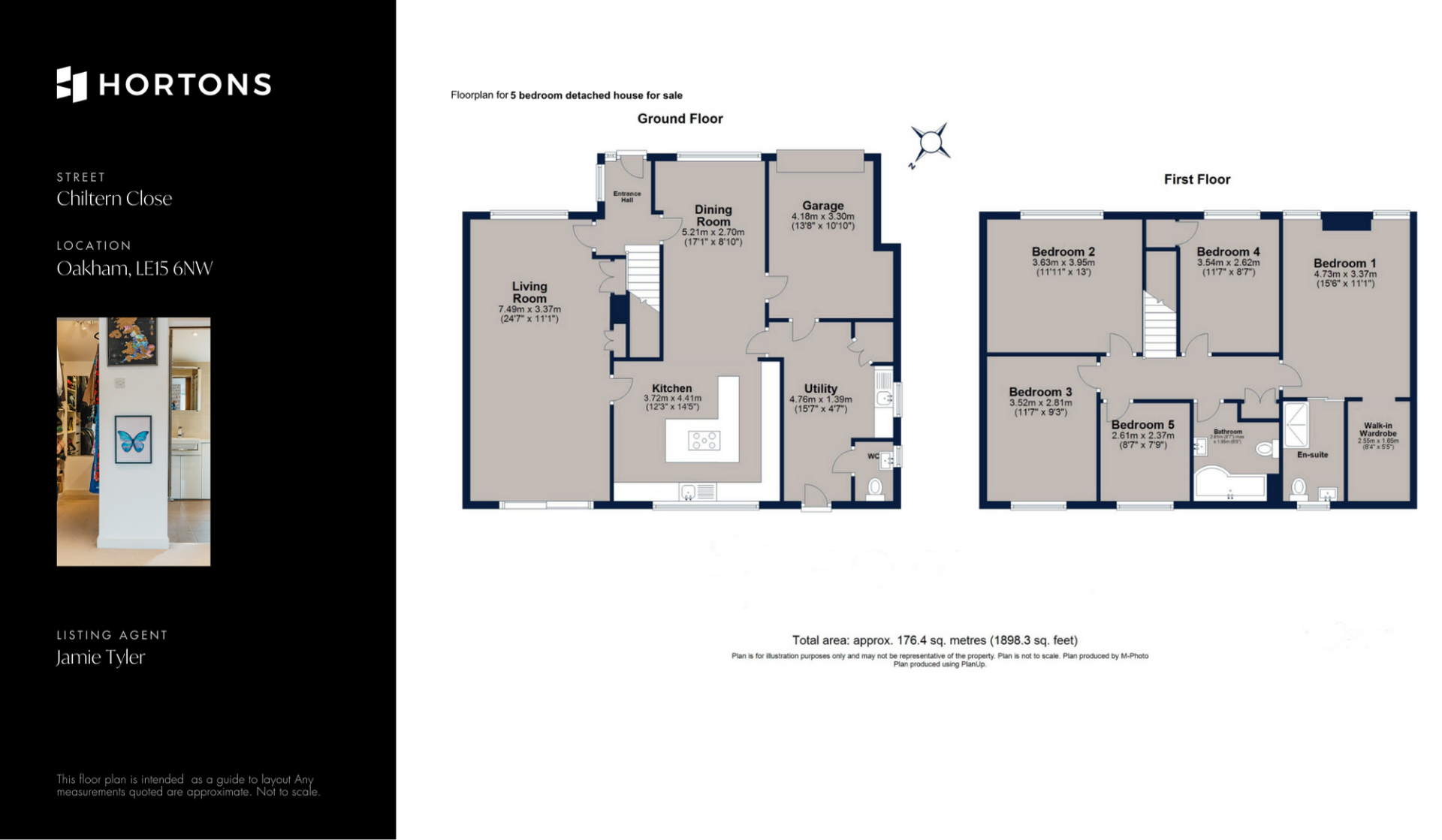 A stunning five-bedroom family home offering spacious living space and gardens with a hot tub and BBQ hut, a stylish living kitchen, master bedroom with a walk-in wardrobe and en-suite, close to town.