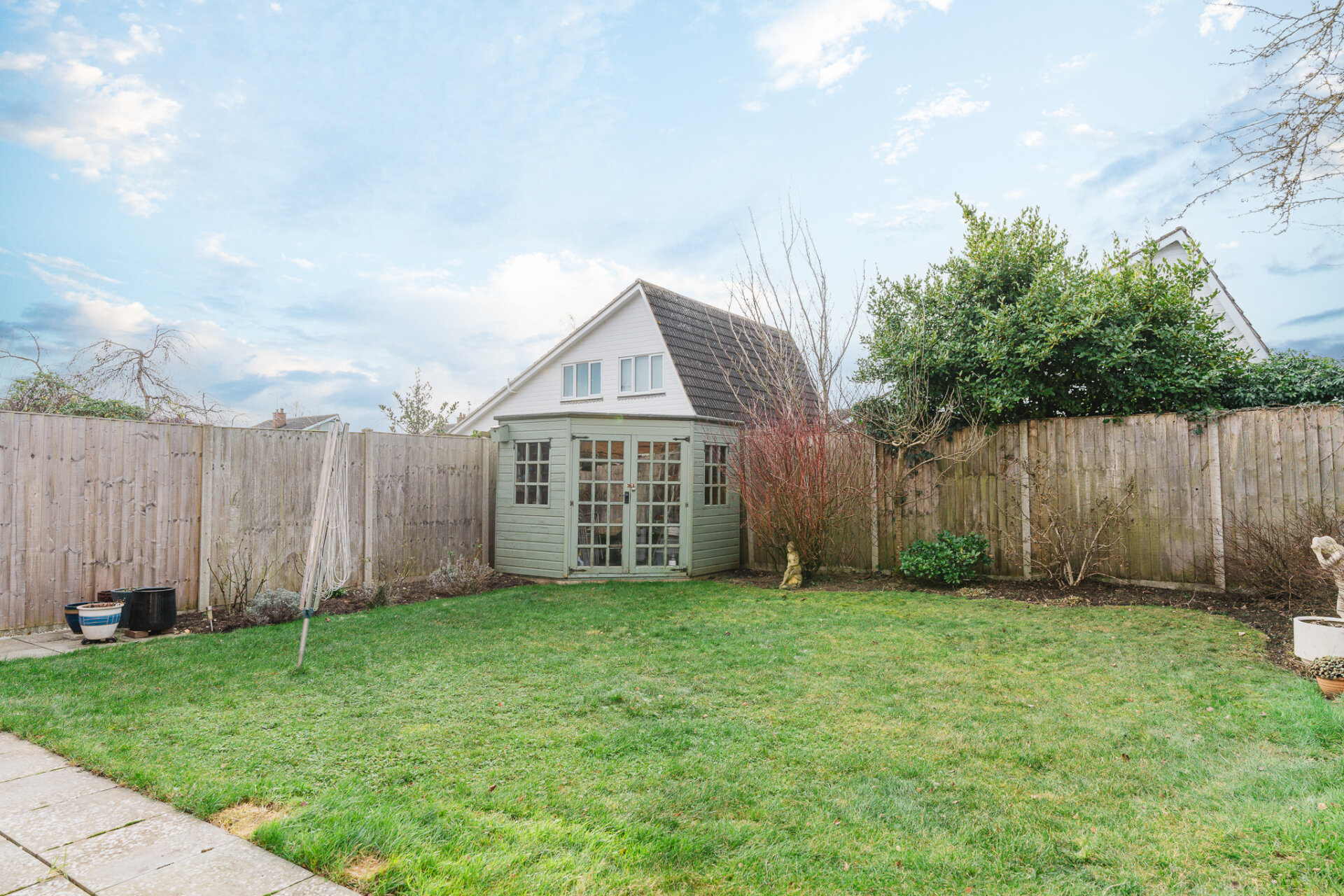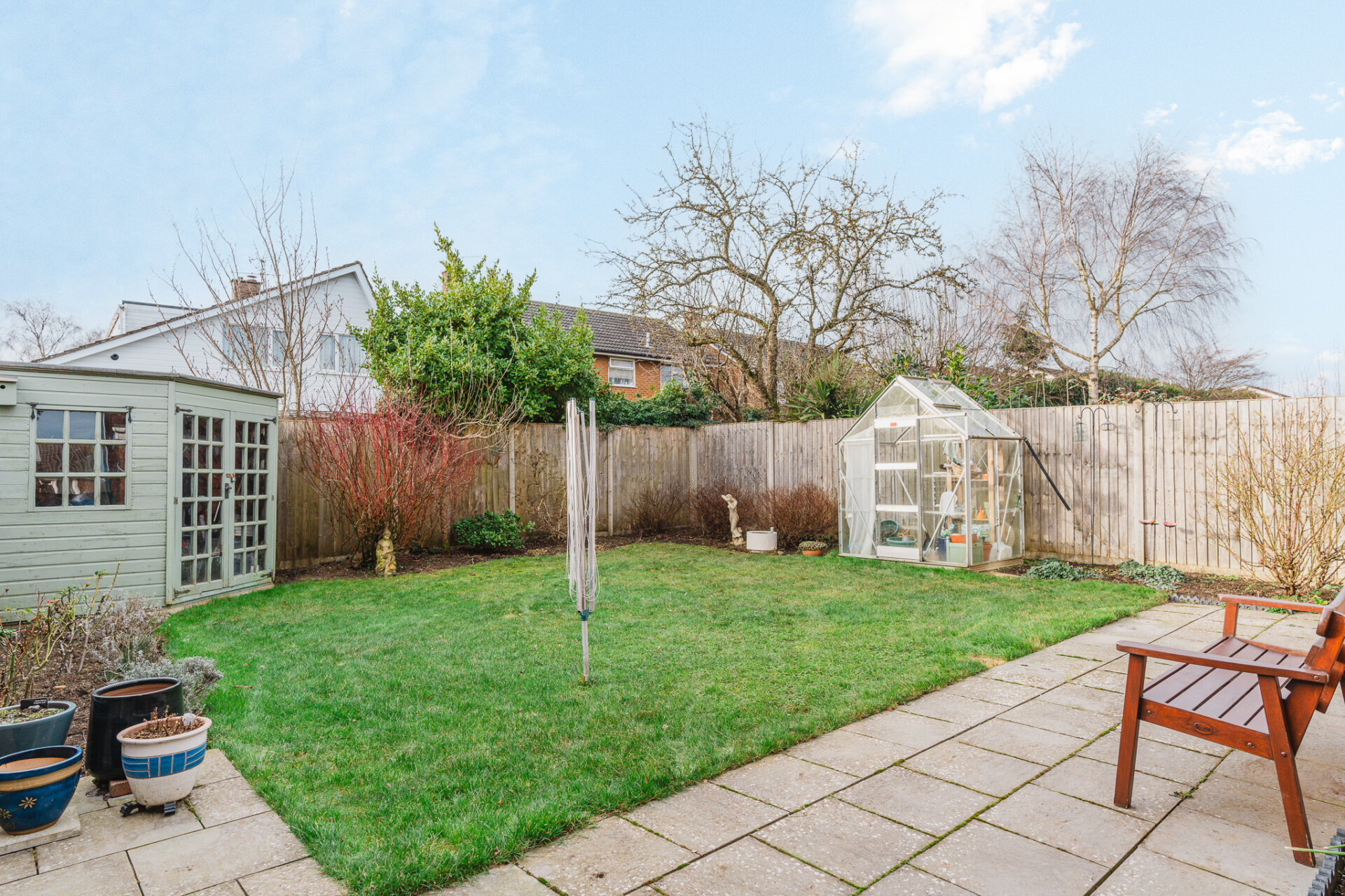 Beyond the interior, the property's exterior is equally charming. Elevated from the road, a block-paved driveway leads to the garage, flanked on either side by easy-to-maintain slate borders interspersed with colourful heather and two mature trees, enhancing the property's kerb appeal. A gate to the side opens to the sunny, south-facing rear garden, fully enclosed by timber fencing. The garden unfolds with a lush lawn, pretty flower borders, a sizable patio seating area, and a delightful summer house – the perfect setting for outdoor enjoyment and relaxation.