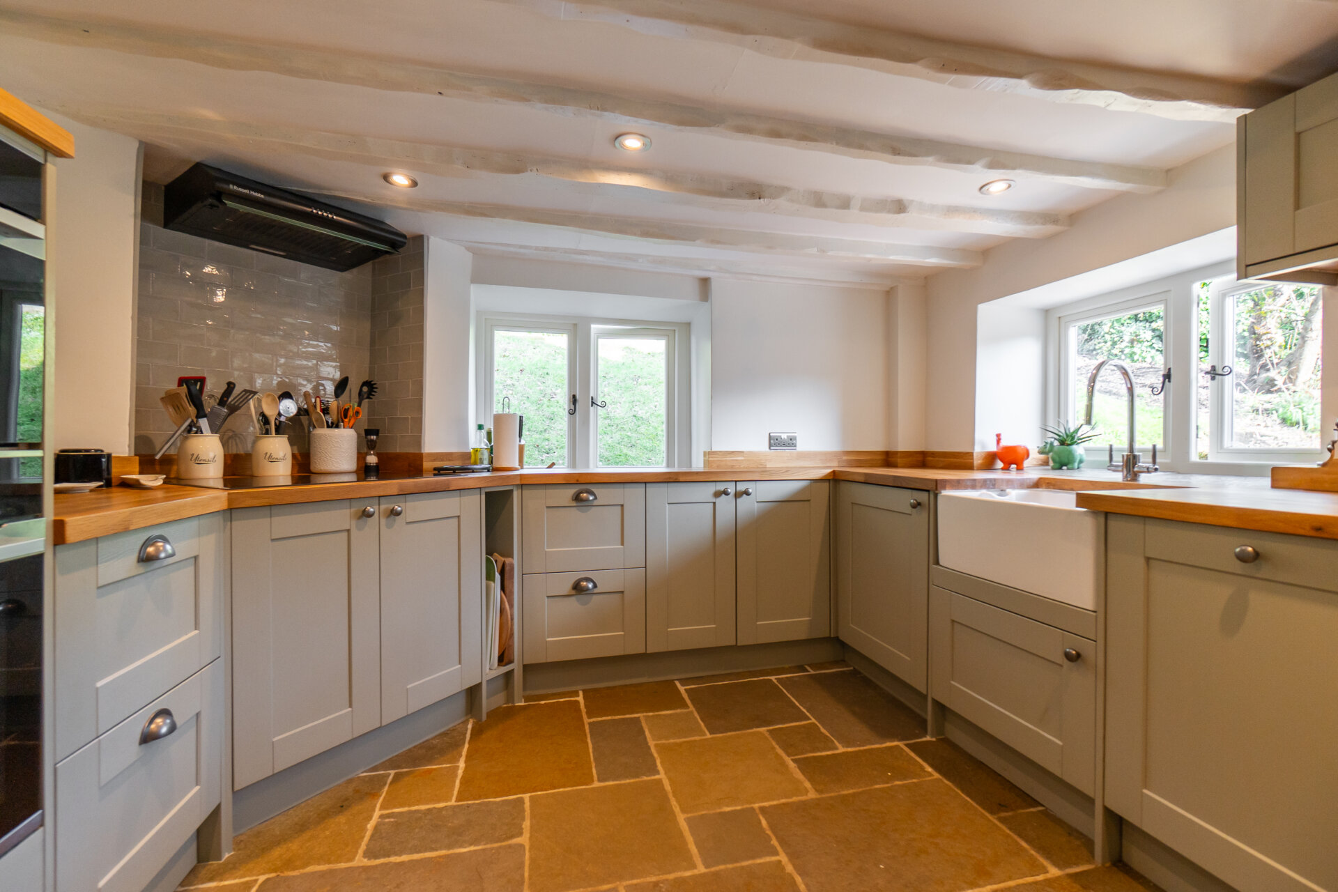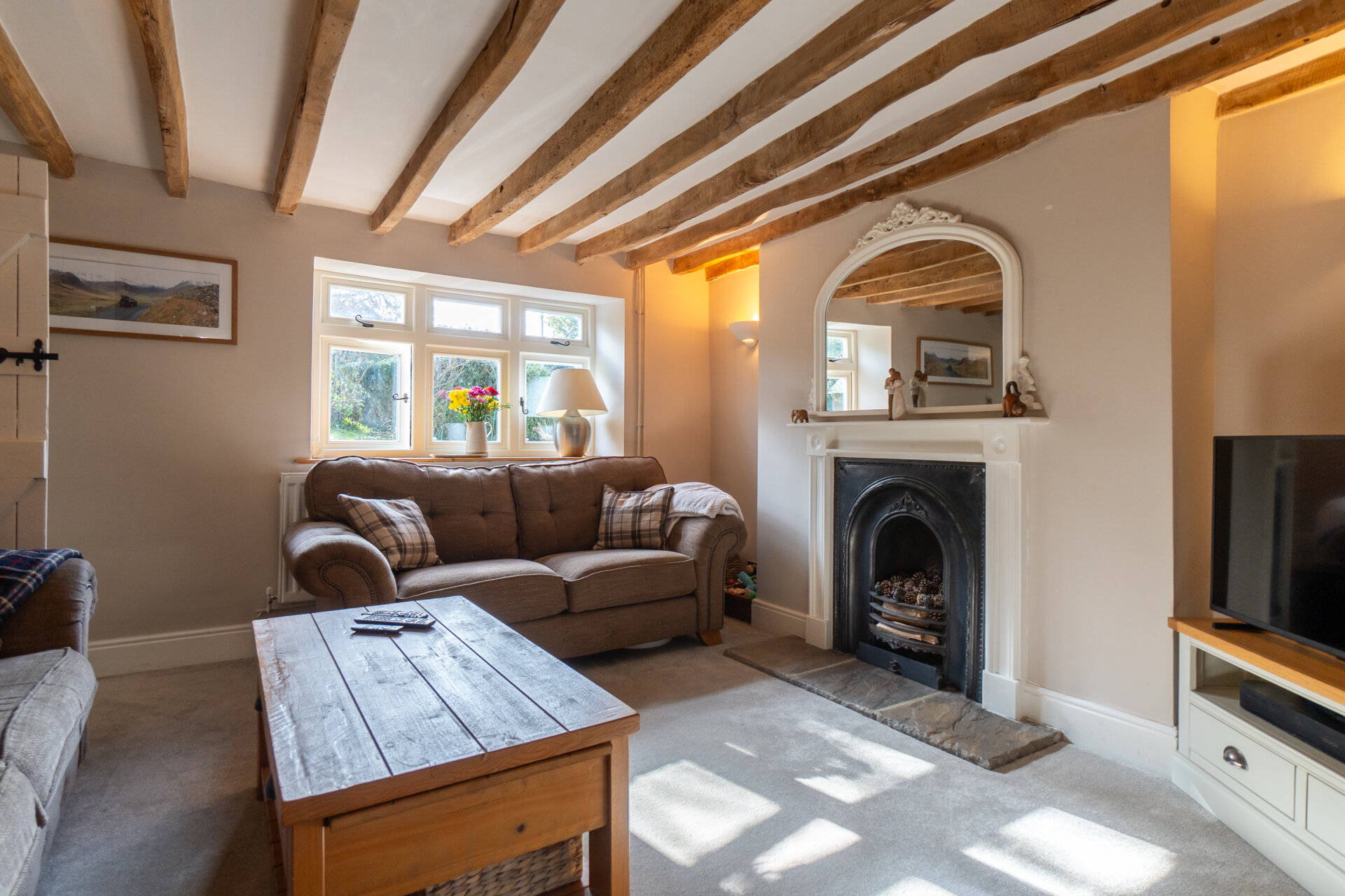 The property has been updated in recent years while retaining its exposed beams, original fireplaces and feature stonework. Improvements include a high quality fitted kitchen, full redecoration, new timber double glazed casement windows and doors, and an air source heat pump central heating system.