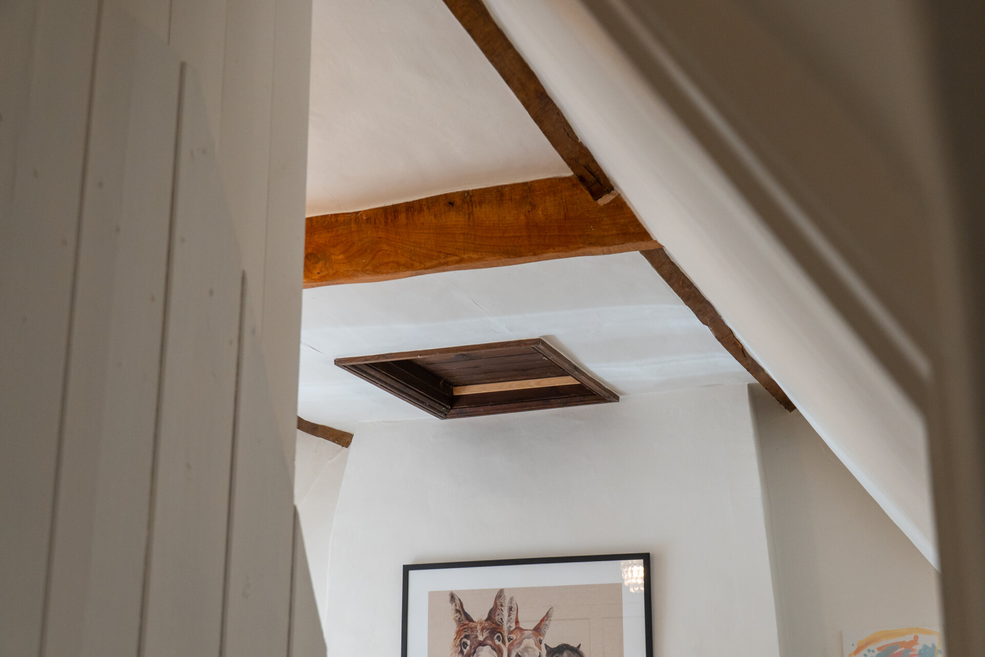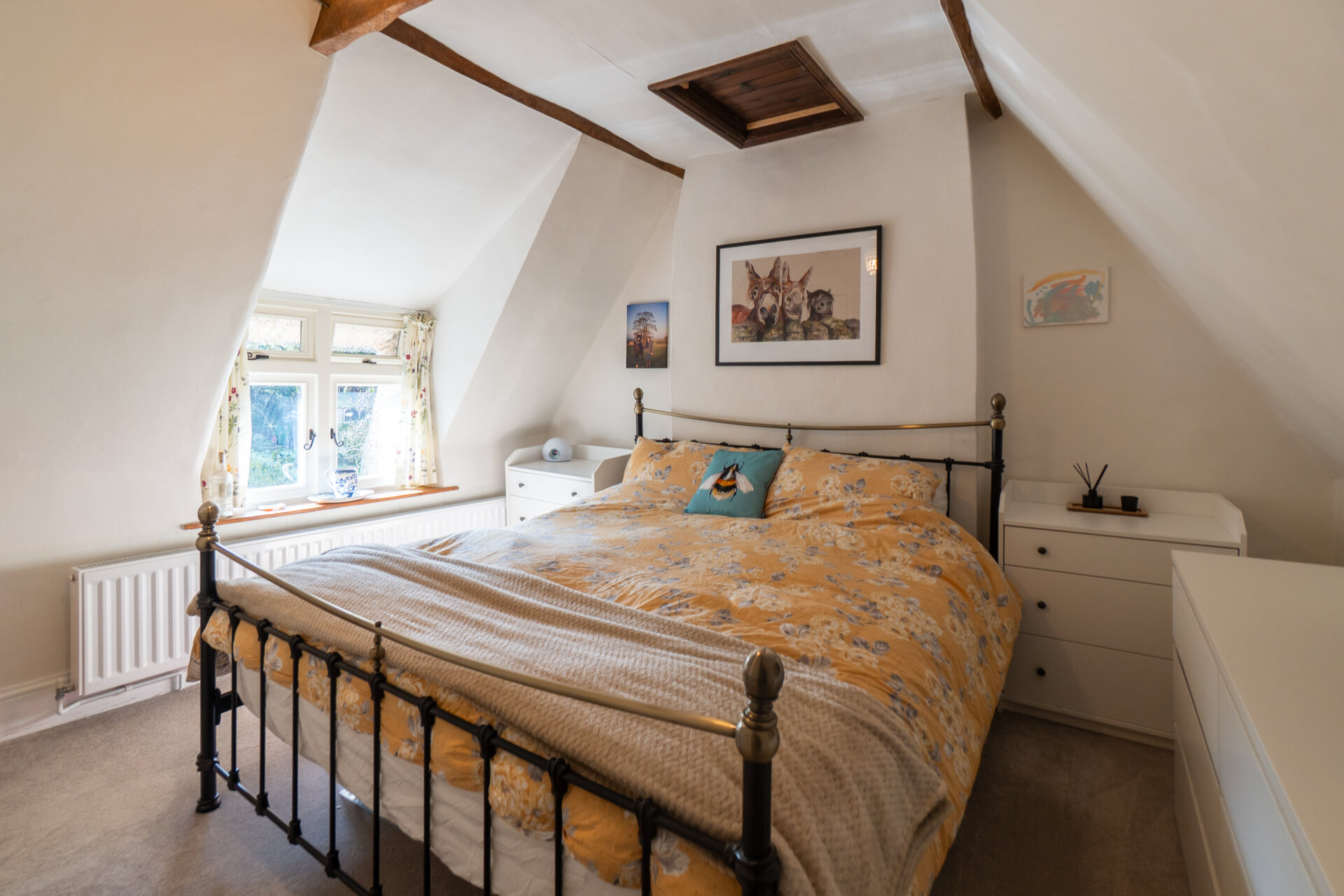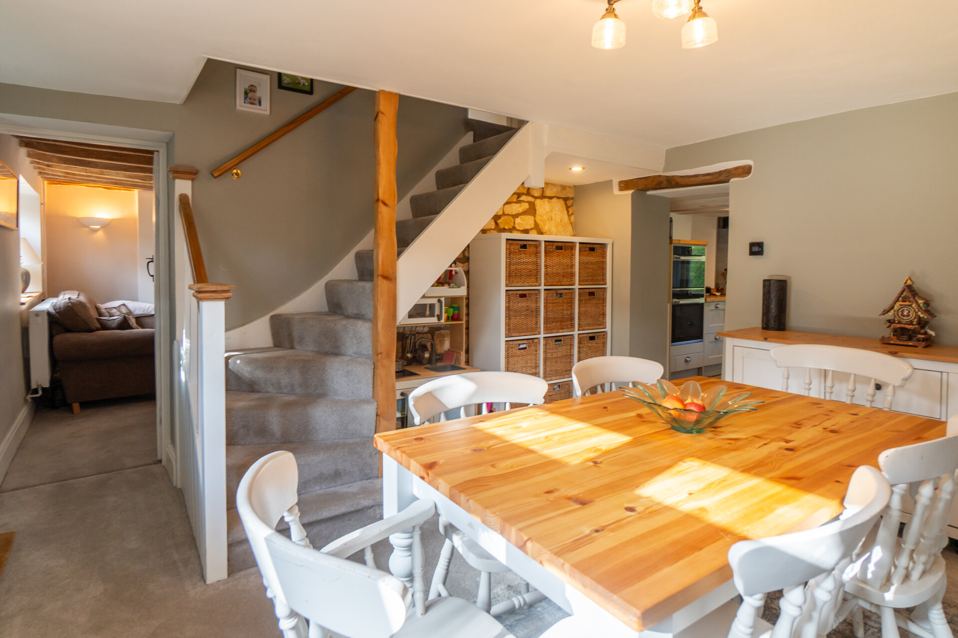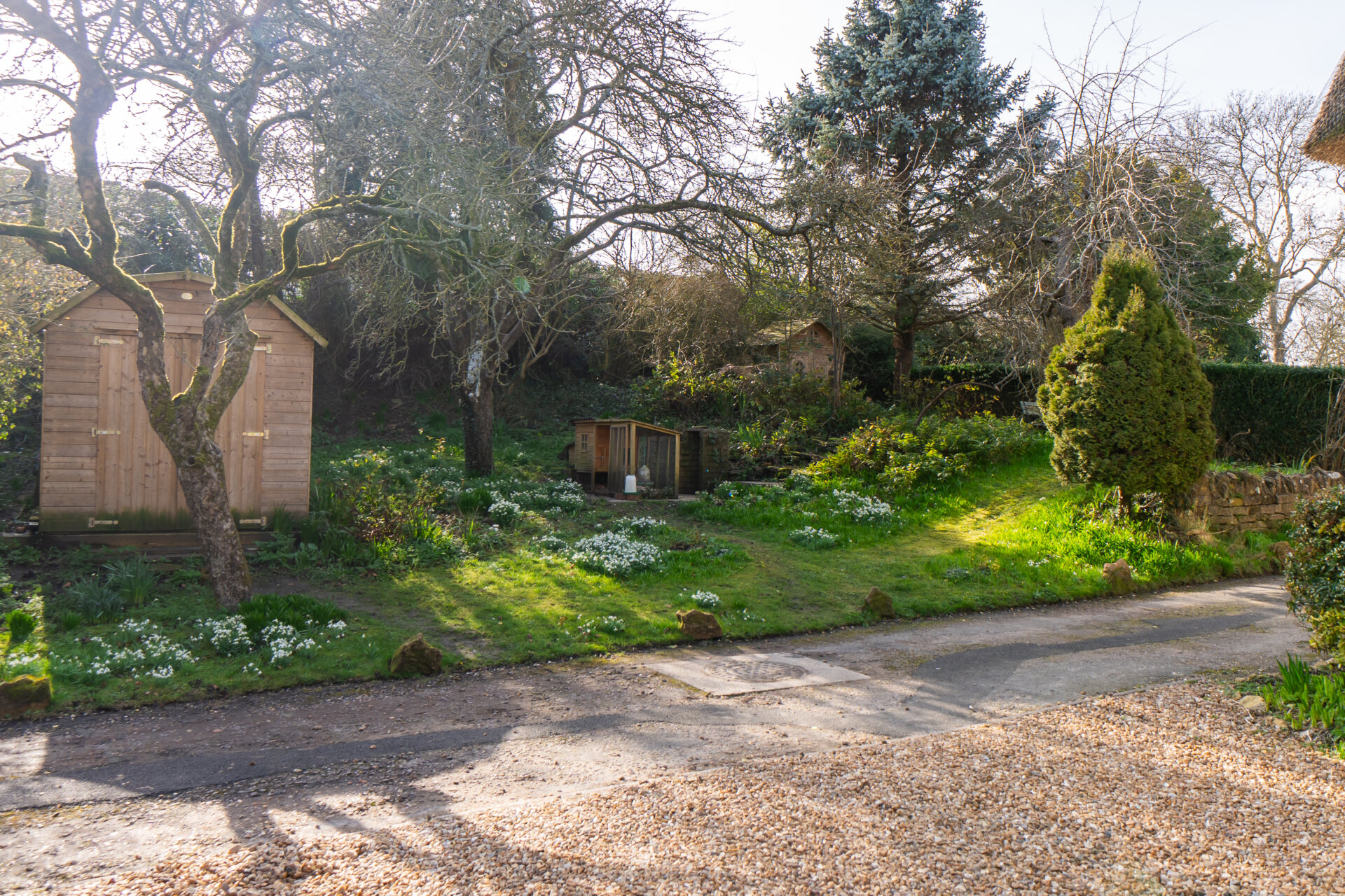 Tucked away at the lower end of a quiet no through road, the setting is particularly peaceful. To the front is a generous orchard area with apple and plum trees. A gravel driveway to the side provides ample parking. The rear garden rises gently with steps leading through lawn and planted areas to the top of the plot, where it backs directly onto Exton Park Estate land and the home office is positioned.