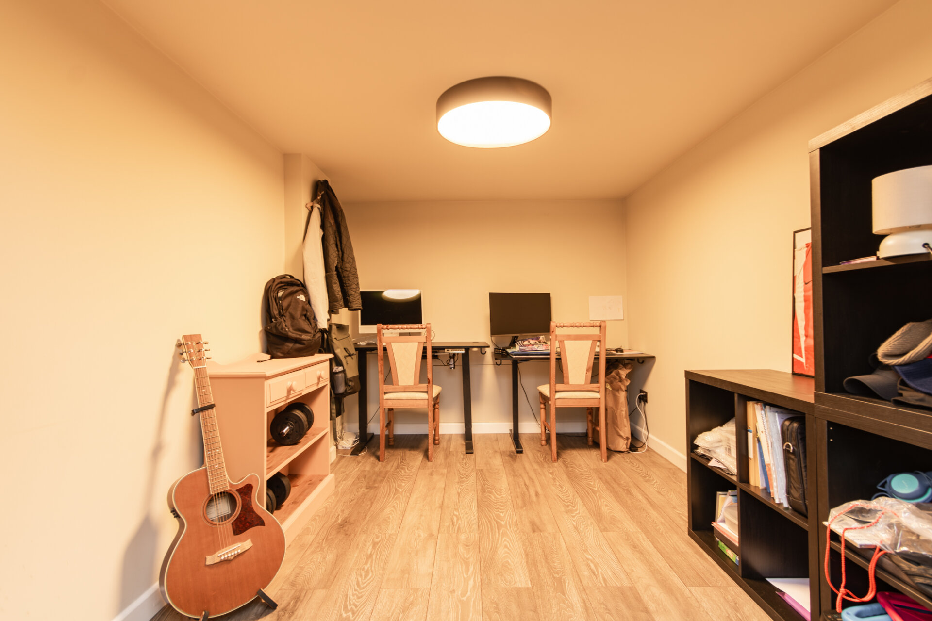 Upstairs, there are three bedrooms, each with built-in storage, along with a contemporary four-piece bathroom.