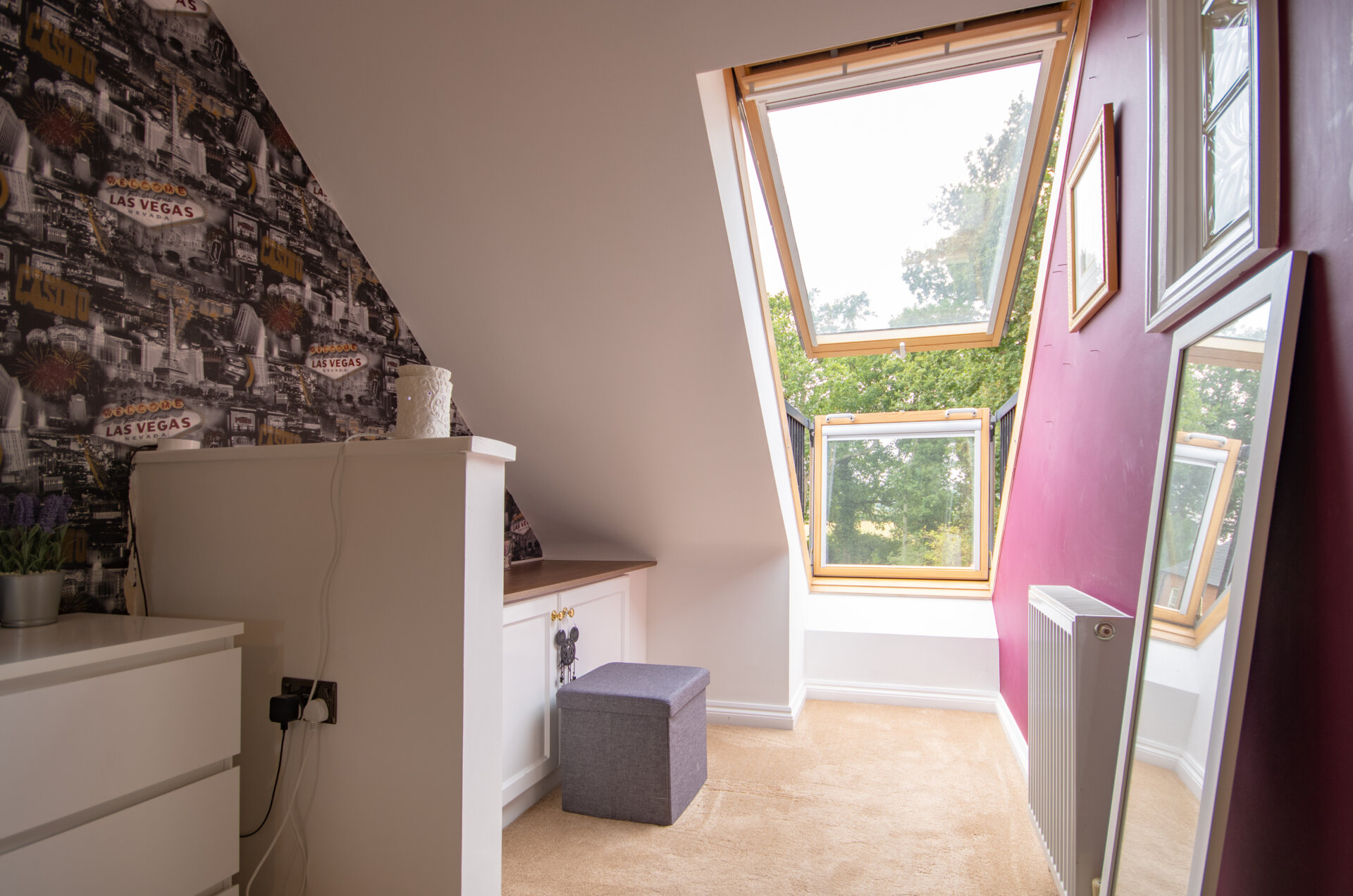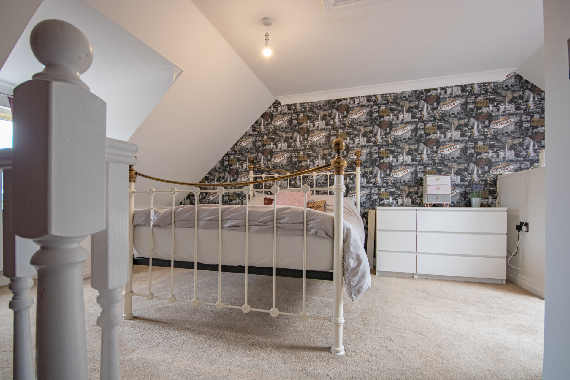 On the first floor, there is a generous double bedroom with fitted wardrobes, a third bedroom, and a stylish four-piece family bathroom. The top floor features a private master suite with Velux windows overlooking the rear aspect and a contemporary ensuite shower room.
