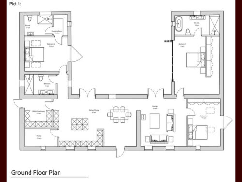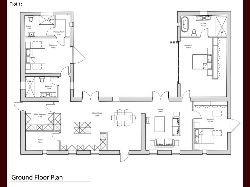 Plot 1: Barn conversion with a gross internal area of 2121 square feet and undercover parking area that will measure 828 square feet. This property will be a three bedroom, single storey barn conversion style build that is centrally located in the development.