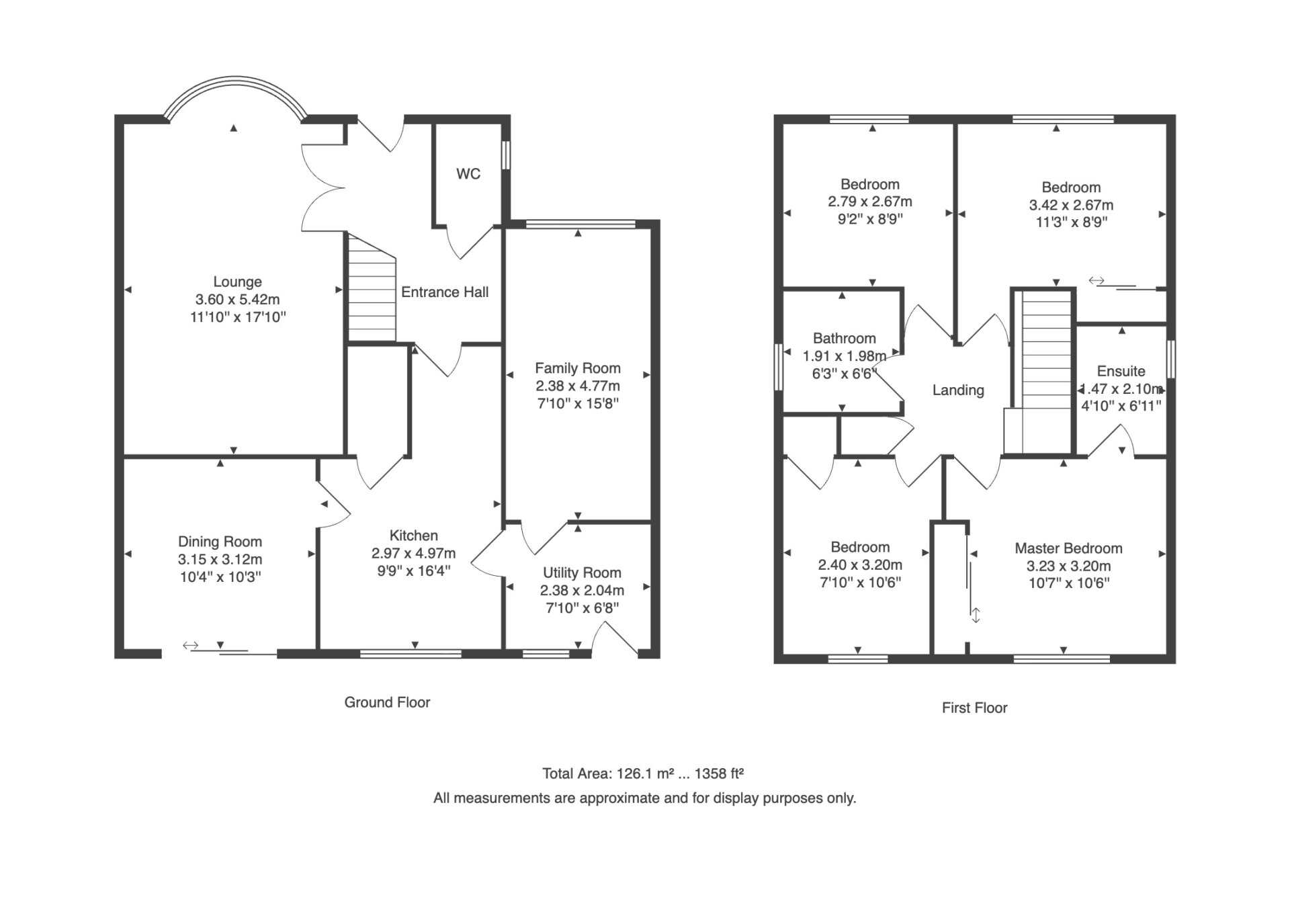 To the first floor, the master bedroom benefits from fitted wardrobes and a re-fitted en-suite shower room. There are three further well-proportioned bedrooms, all with fitted wardrobes, alongside a family bathroom.