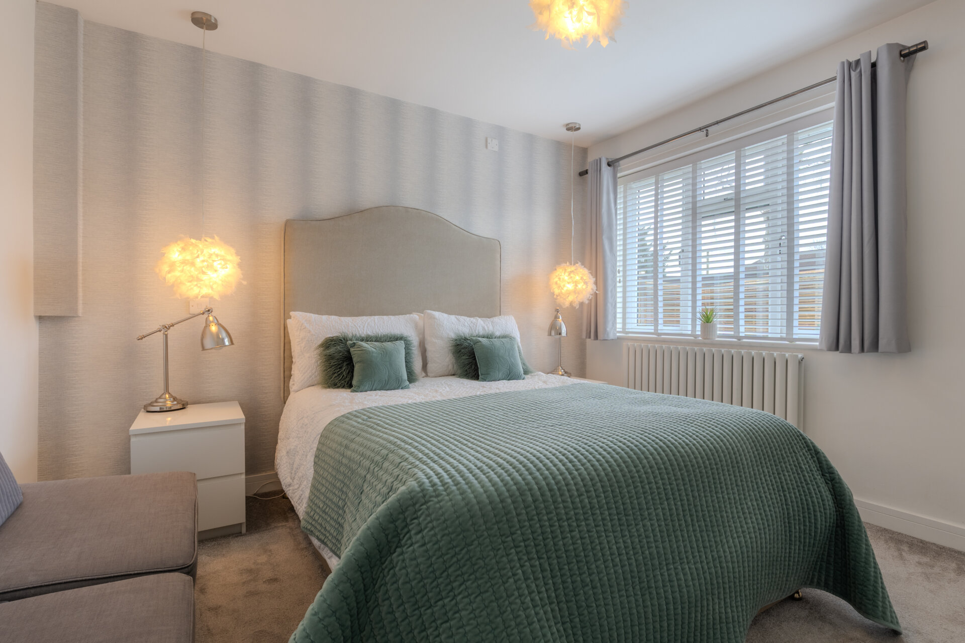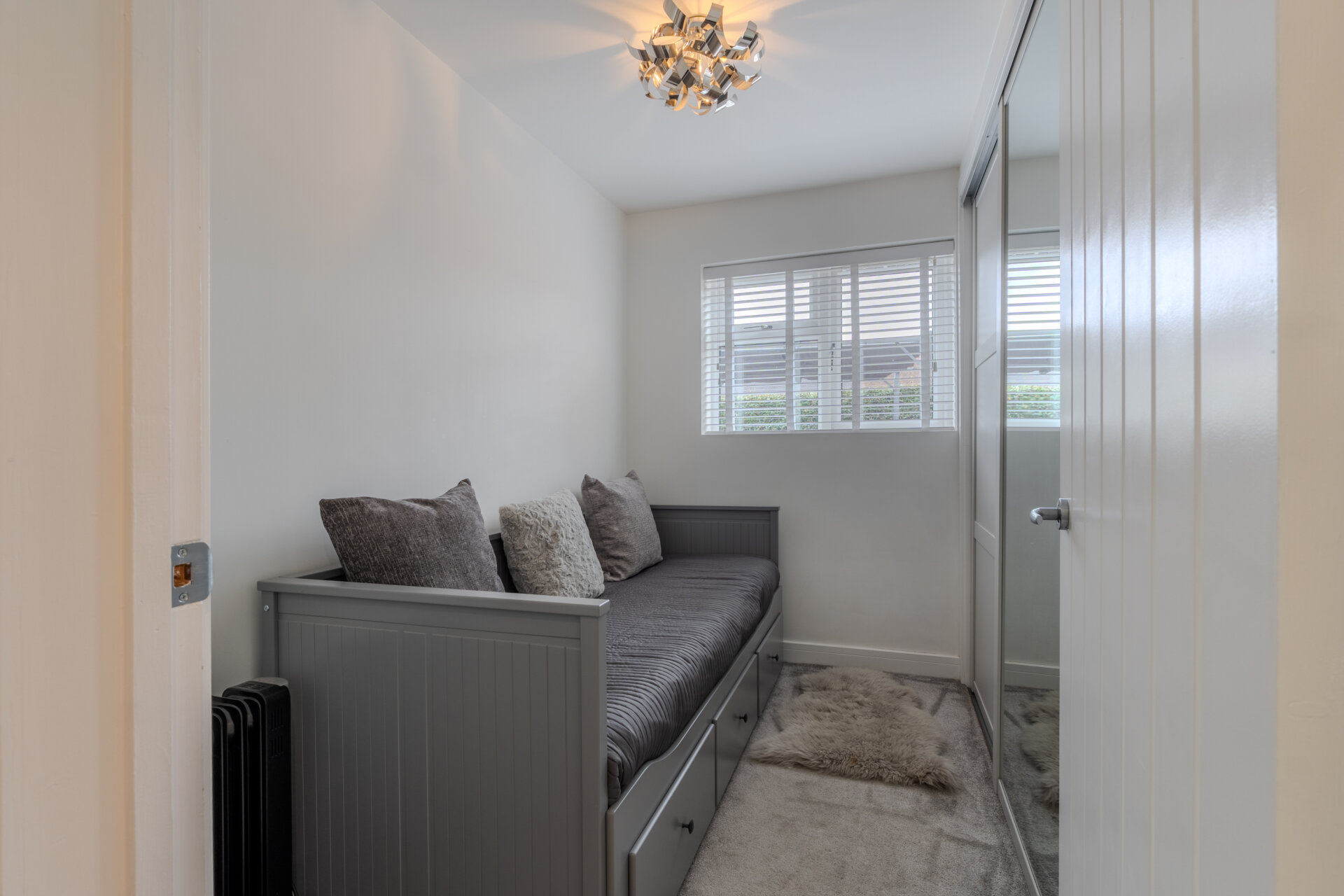 Having carpeted flooring, window front elevation, radiator and light fittings to ceiling.