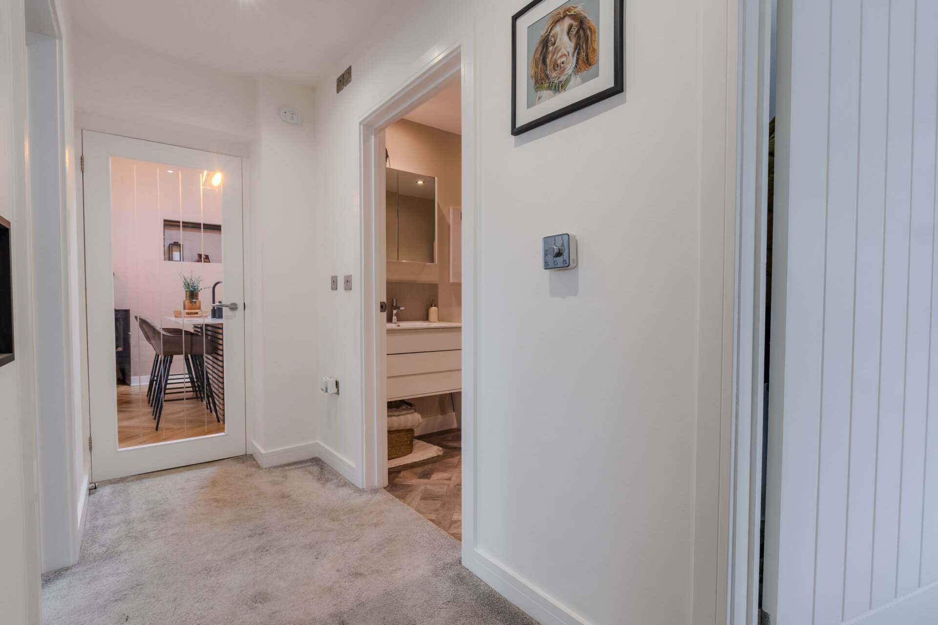 Having carpeted flooring, spotlights to ceiling, access to loft with pull down ladders, loft housing boiler and doors giving access to three bedrooms and bathroom.