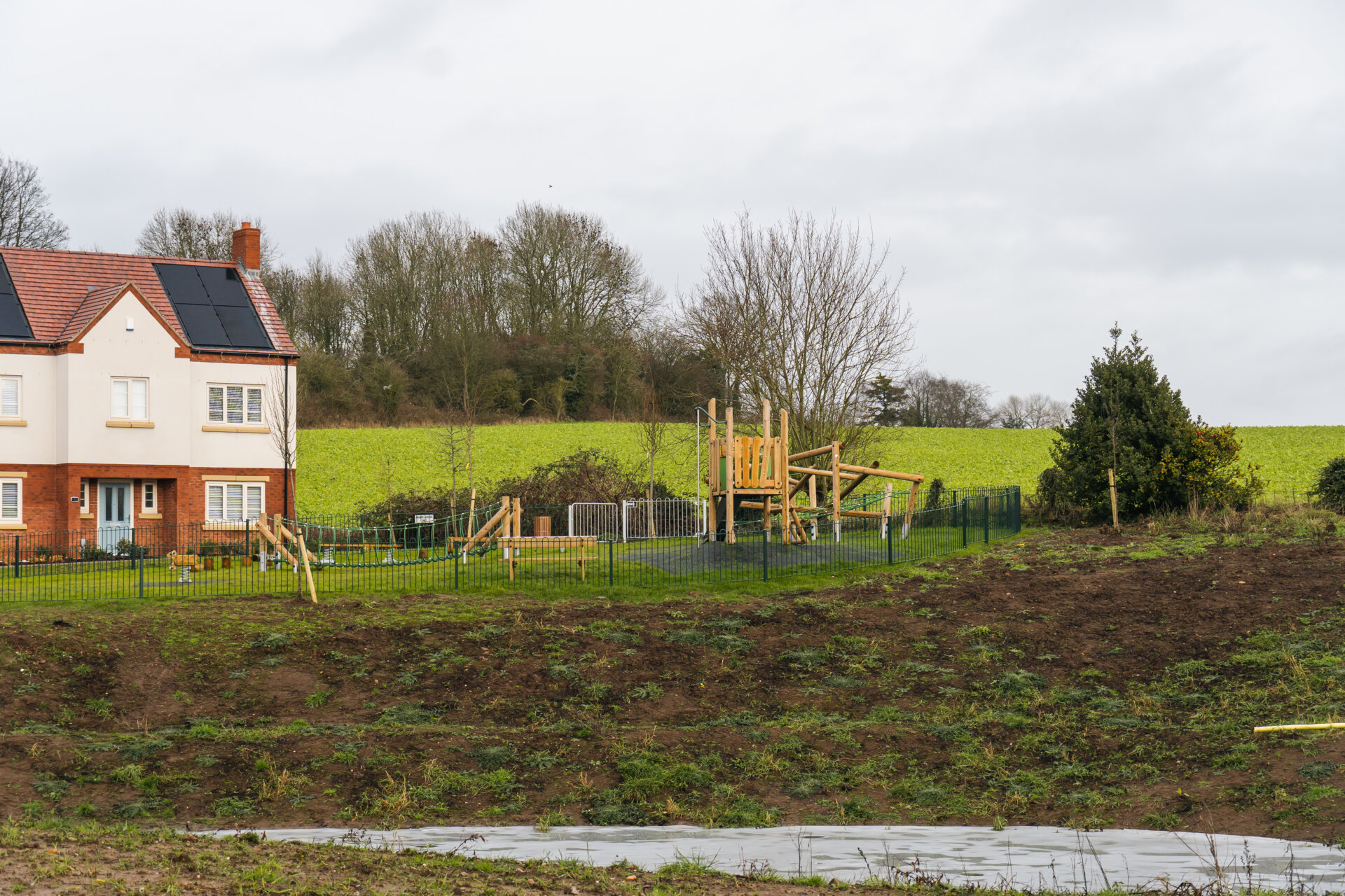 Situated on the highly desirable Mary’s Meadow development, built by Owl Homes in 2024, this well-appointed three-bedroom detached residence enjoys a prime edge-of-development position with attractive green frontage. The property occupies a particularly peaceful and prominent setting, overlooking the pond, children’s play area and open fields beyond.