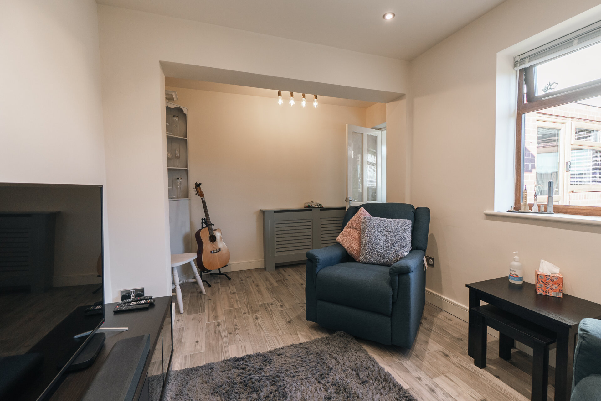 Having tiled flooring, radiator, window over looking the front aspect, light fitting to the ceiling and door to the rear giving access to the kitchen.