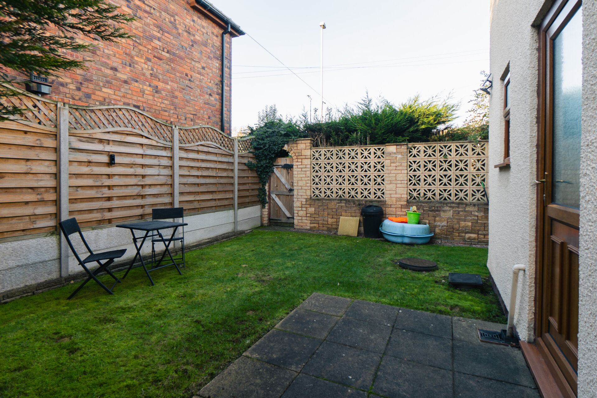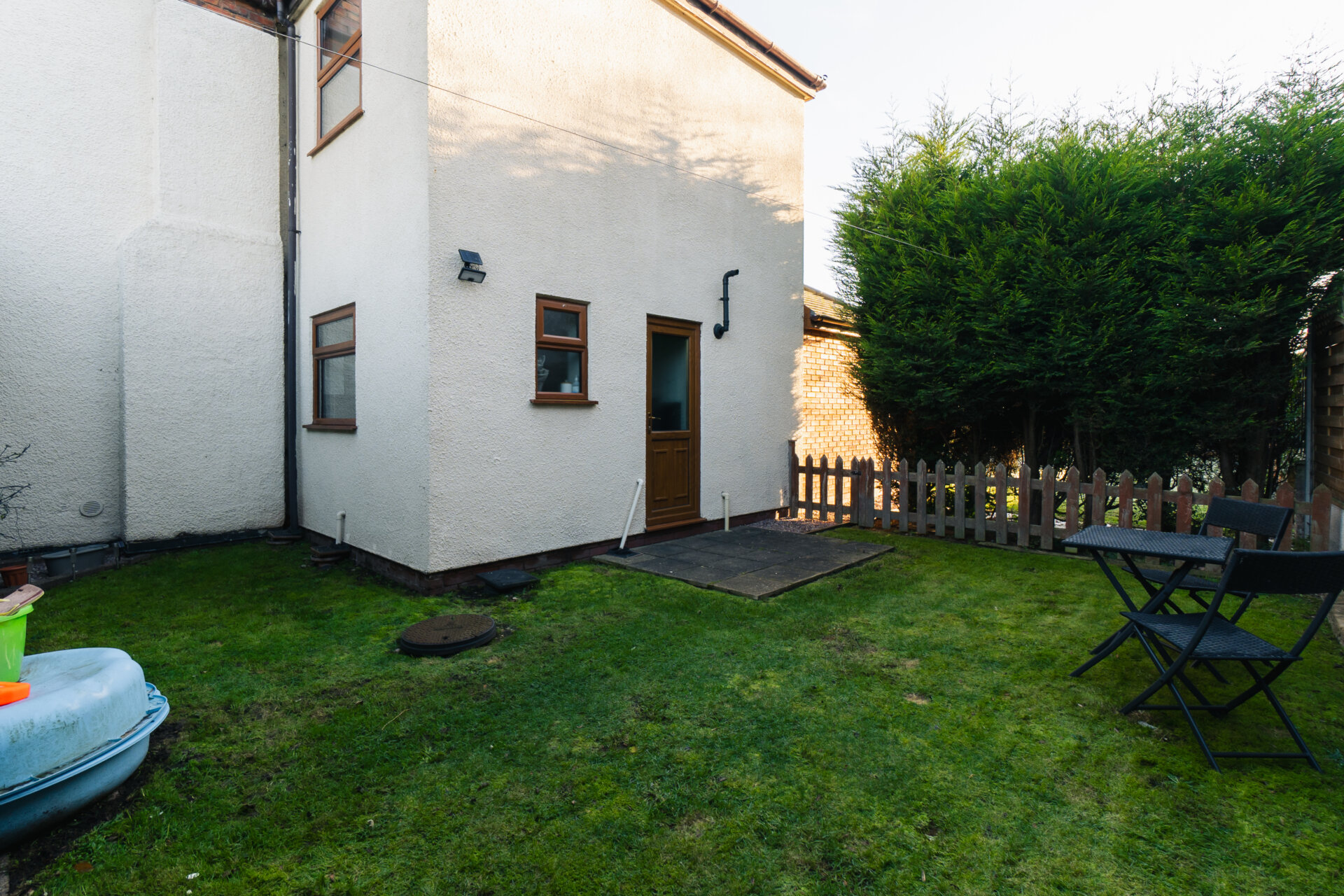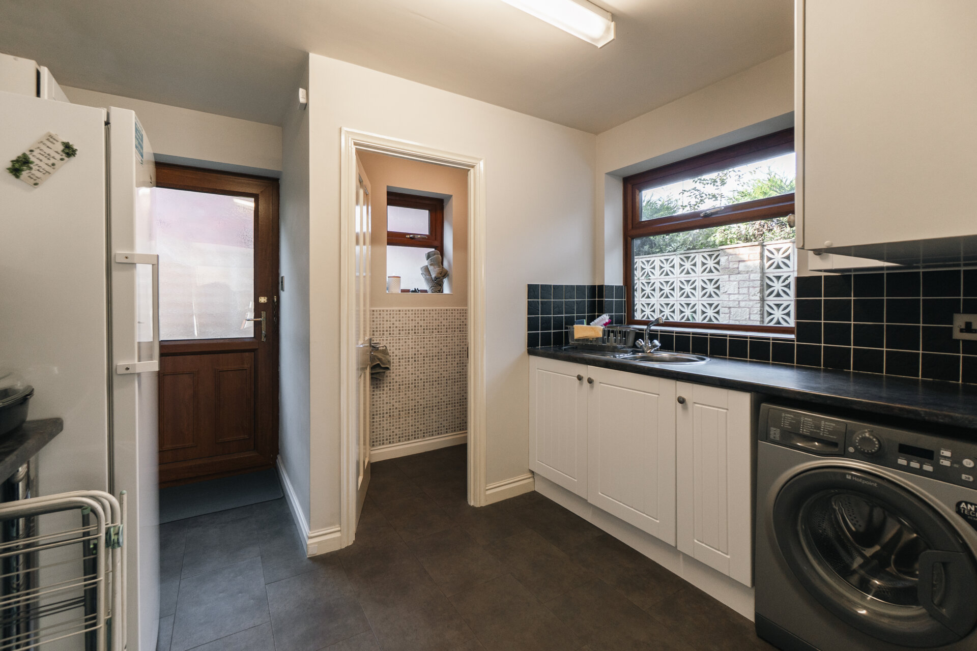 Having tiled flooring, part tiled walls, space for white goods, a range of wall and base units with work surface over, boiler, door to the side giving access to the side garden, window to the fore, stainless steel sink with drainer and mixer tap over, light fitting to the ceiling and door giving access to w.c.