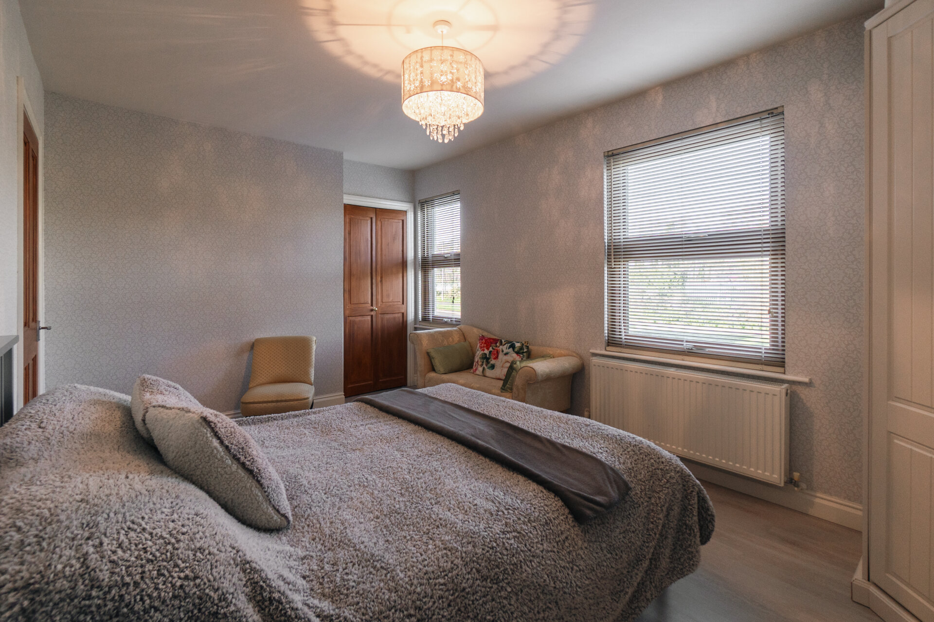 Having laminate flooring, fitted wardrobes, radiator, windows to the front elevation, light fitting to the ceiling and door to the rear giving access to the en-suite.