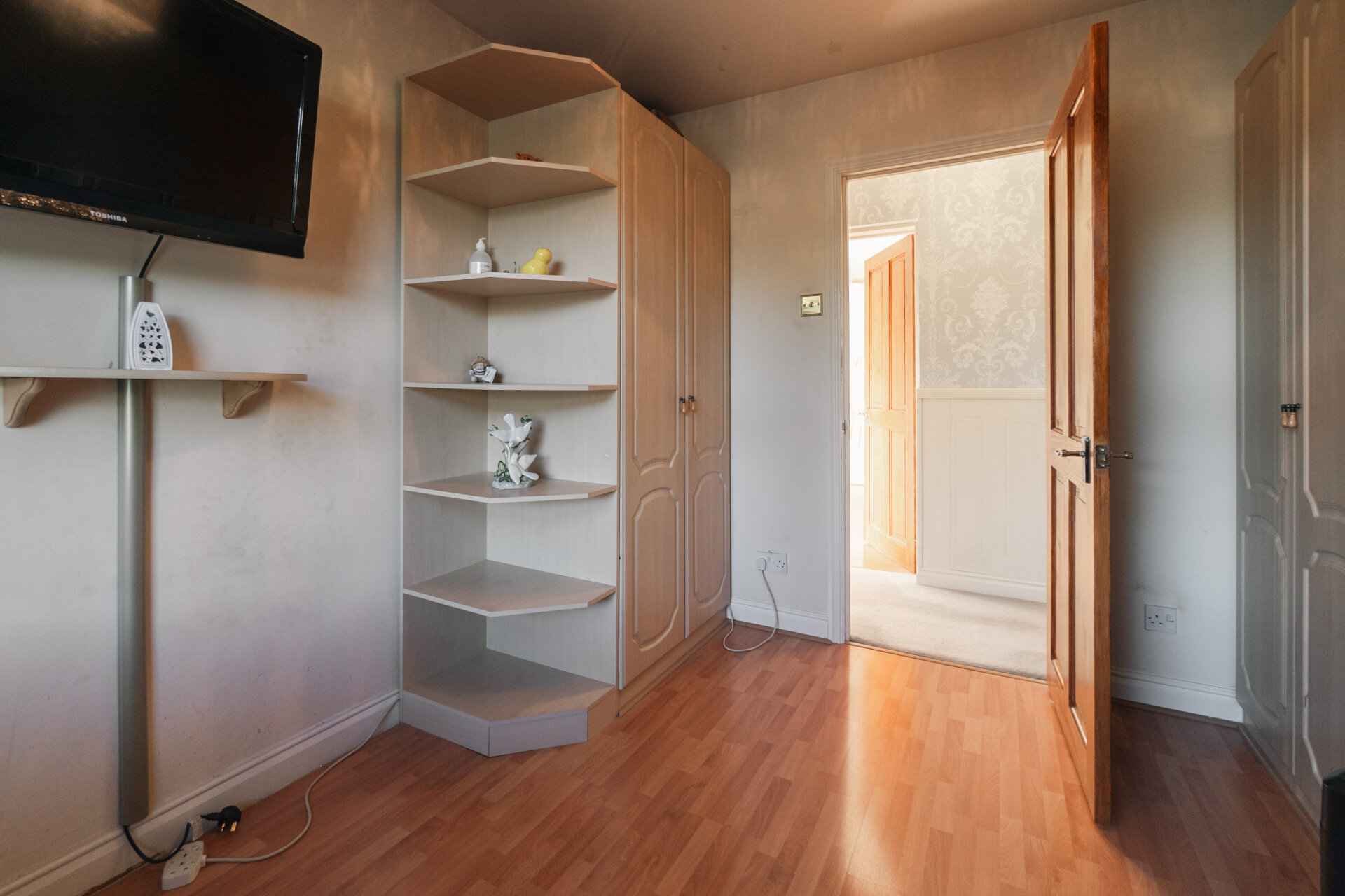 Having laminate flooring, radiator, window to the front and rear elevation, fitted storage and light fitting to the ceiling.