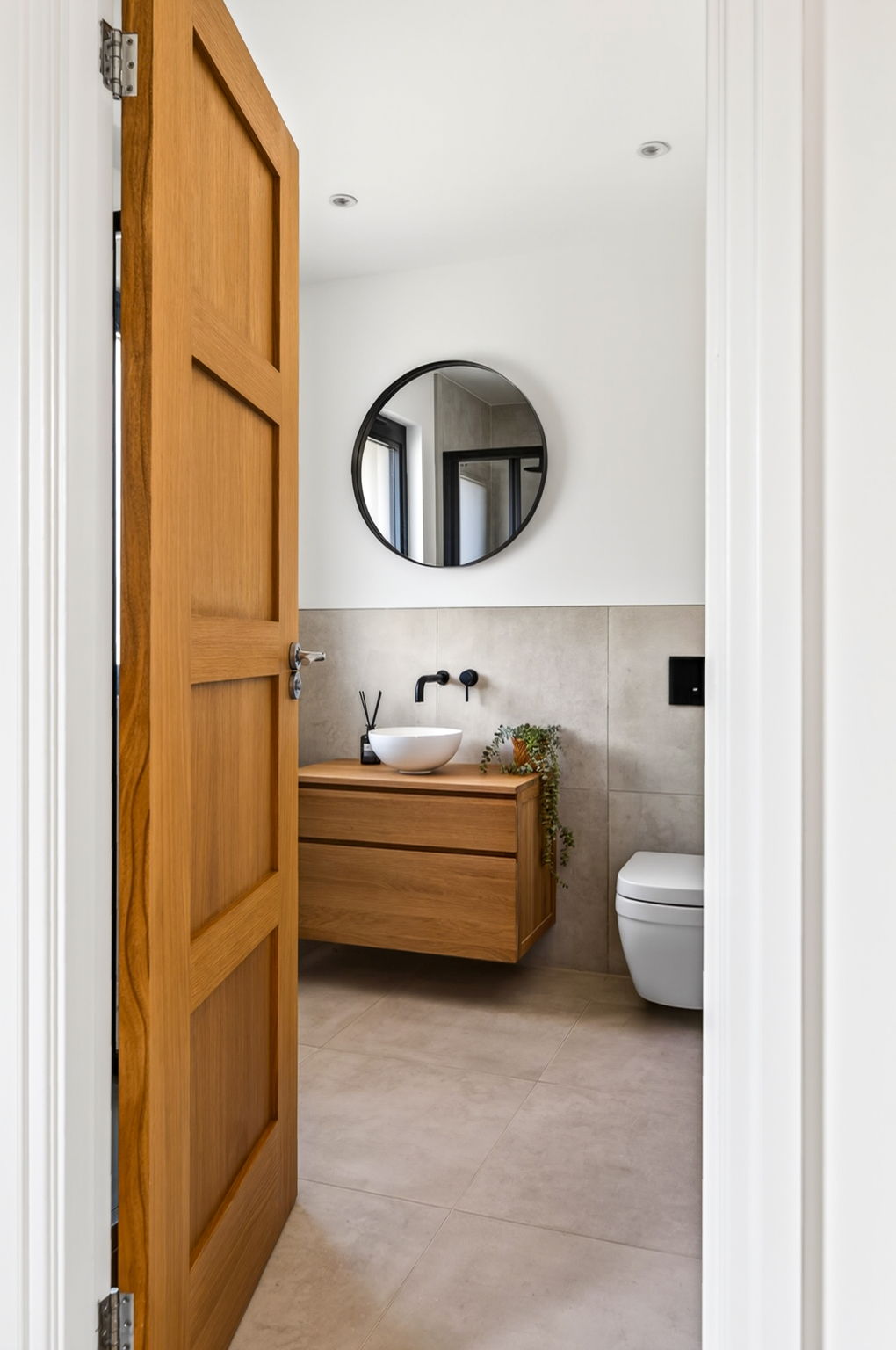 A separate utility area, with its own external door, keeps the practical elements tucked away, maintaining the home’s clean and uncluttered feel.