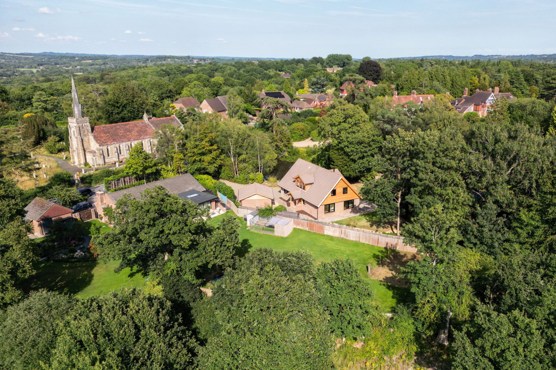 As you approach via the gated driveway, the wow factor of Deer Leap is immediate. The home sits beautifully within its plot, with a large double garage and a wraparound garden that allows you to follow the sun throughout the day.