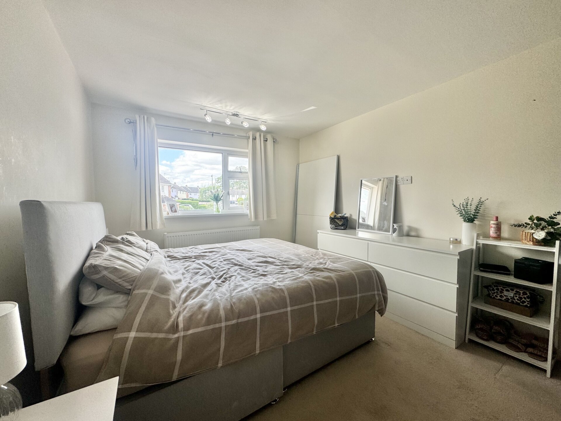 The accommodation comprises a well-proportioned lounge and dining area, and a modern kitchen, providing ample space for day-to-day living. Characterised by warm, neutral tones and an abundance of natural light, the interior creates a comfortable and inviting atmosphere throughout.