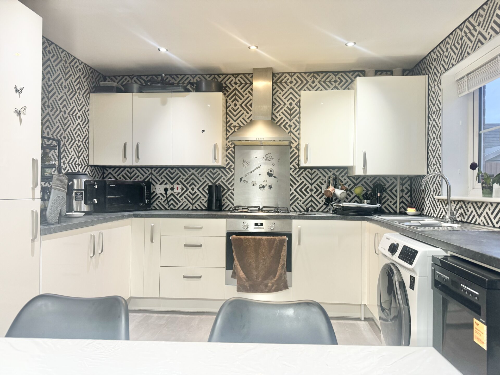The heart of this home lies in the well-equipped kitchen, designed with both functionality and style in mind. Featuring sleek cabinetry, integrated appliances, and ample countertop space with french doors leading to the rear garden.