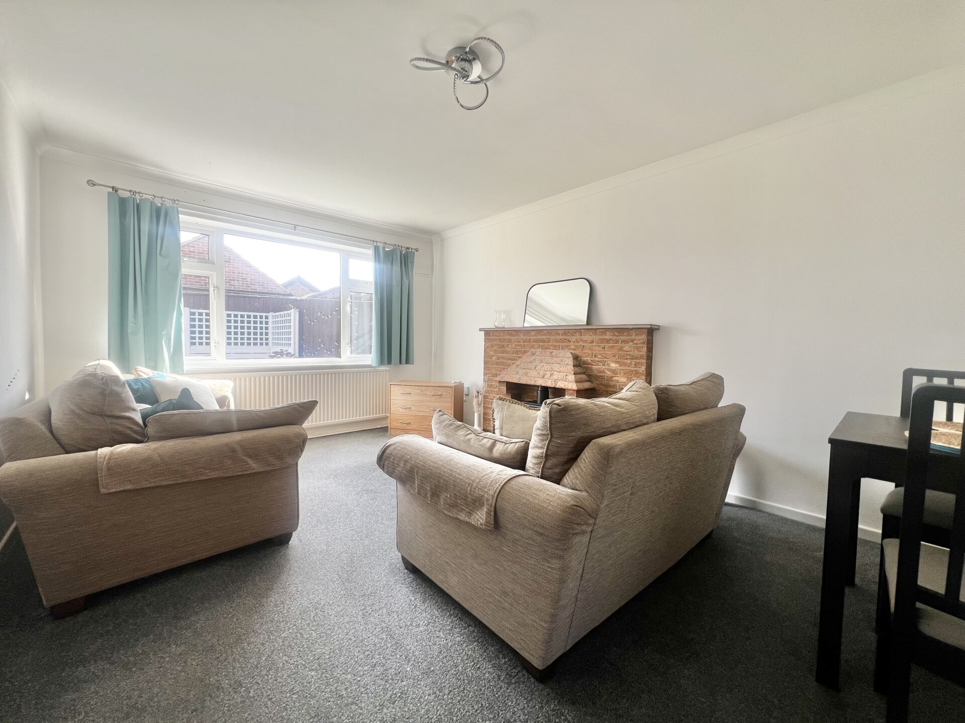 UPVC double glazed window, radiator, brick feature fireplace.