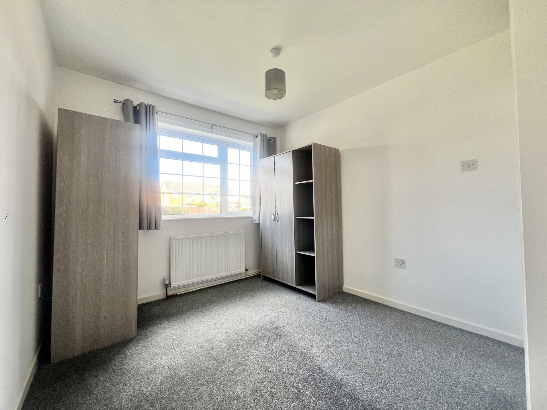 UPVC double glazed window to the front, wall mounted radiator, ceiling pendant light, carpeted flooring