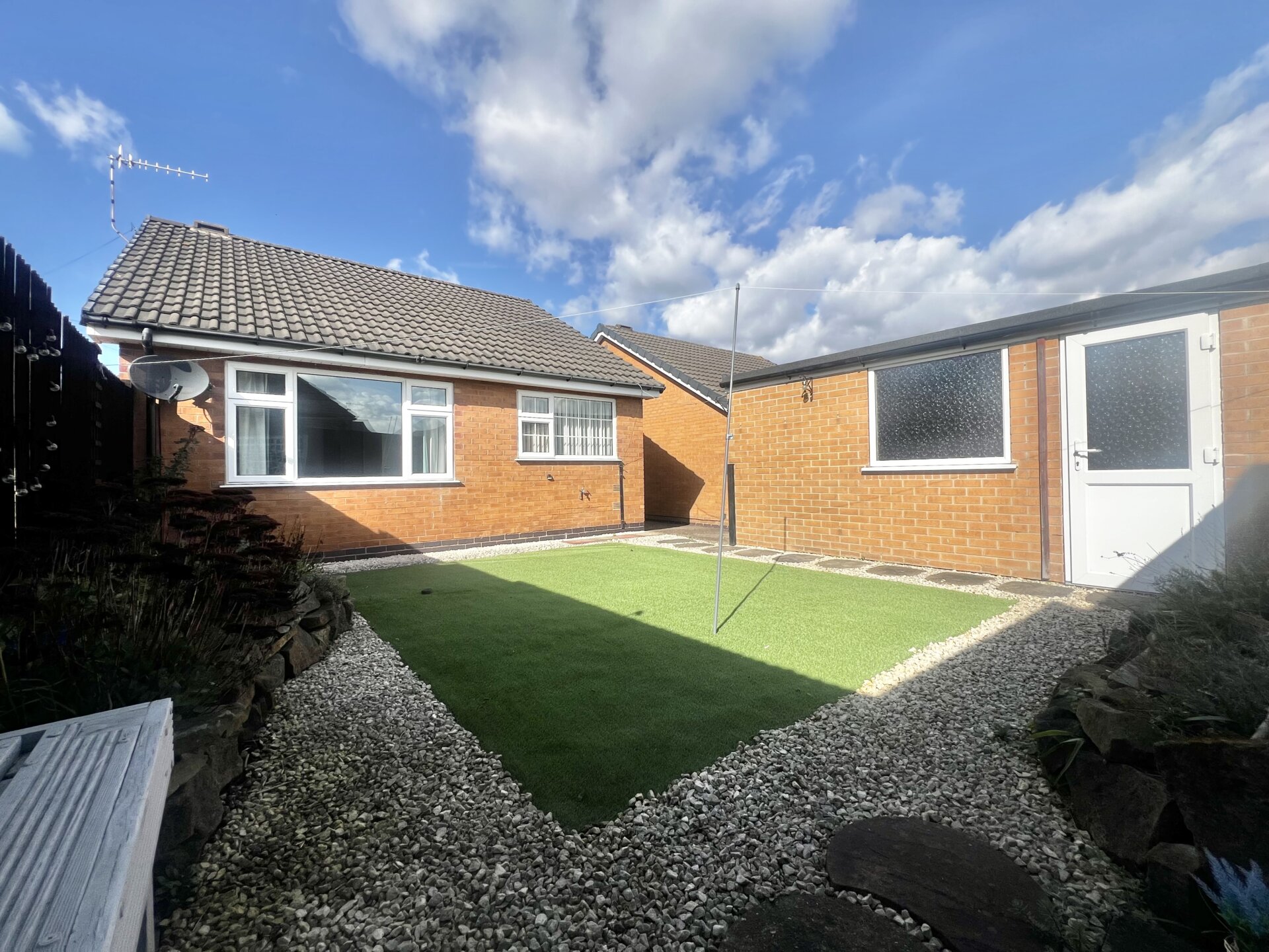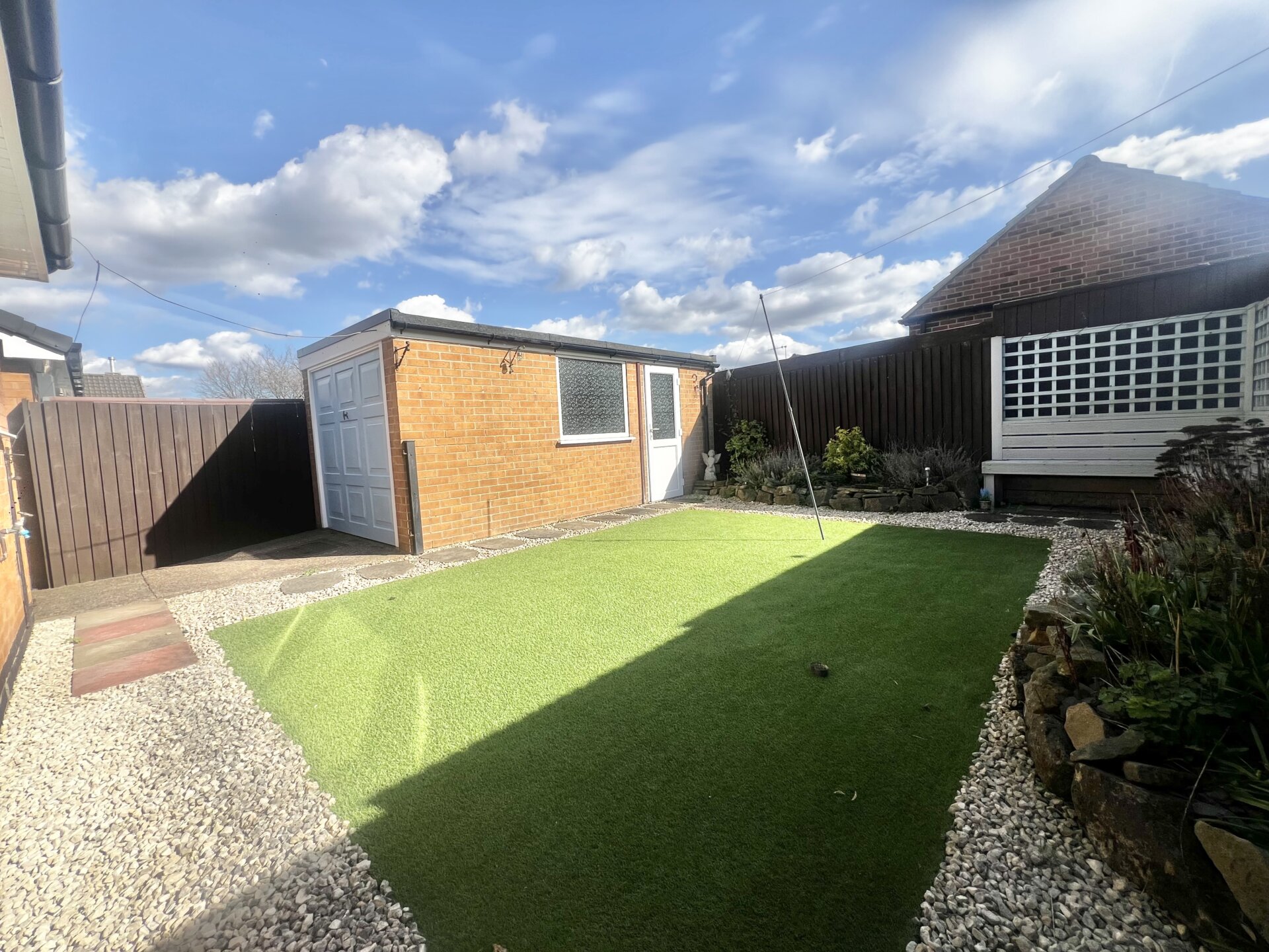 Externally, the bungalow has a driveway to the front, providing ample off road parking, as well as a neatly maintained lawn. Double gates lead to the side elevation and the main entrance, offering both security and privacy. To the rear of the property, you will find a detached garage, perfect for additional parking or storage needs. The rear garden is designed for low maintenance, featuring quality astro turf and attractive gravel borders, making it an ideal outdoor space for relaxing or entertaining. A dedicated seating area offers the perfect spot for enjoying sunny days or alfresco dining. This property’s outside space has been thoughtfully planned to combine practicality with pleasant surroundings, ensuring you can enjoy your home both inside and out.