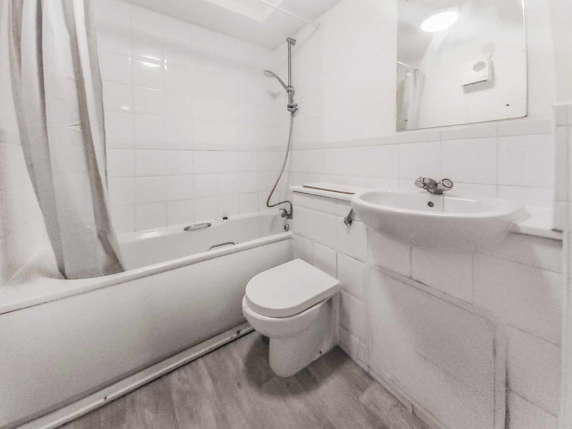 There is a comfortable double bedroom and a full bathroom with shower above the bath.