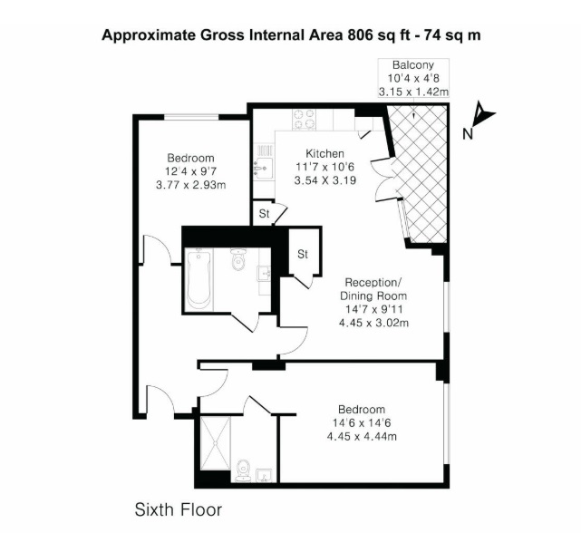 2 double bedroom 6th floor flat with balcony, open plan living, ensuite, modern bathroom, lift, 24hr concierge. Near Canary Wharf Station and Crossharbour DLR. EPC B.