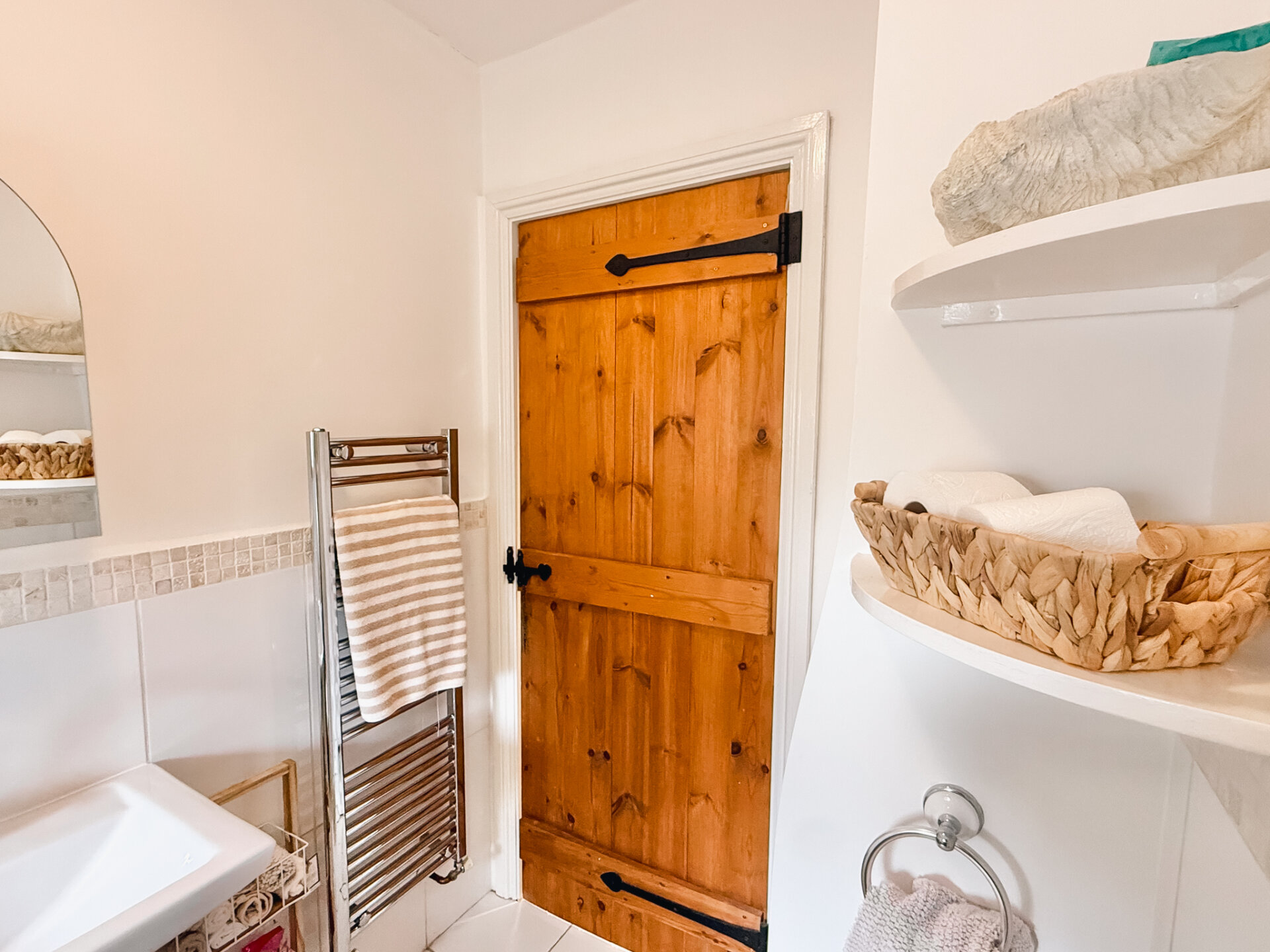 The well appointed kitchen provides ample storage and workspace, complemented by contemporary fittings that suit the cottage’s character.
