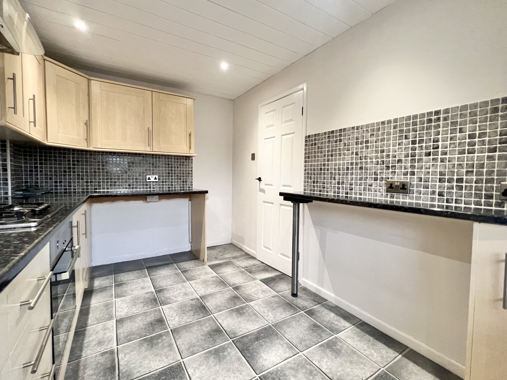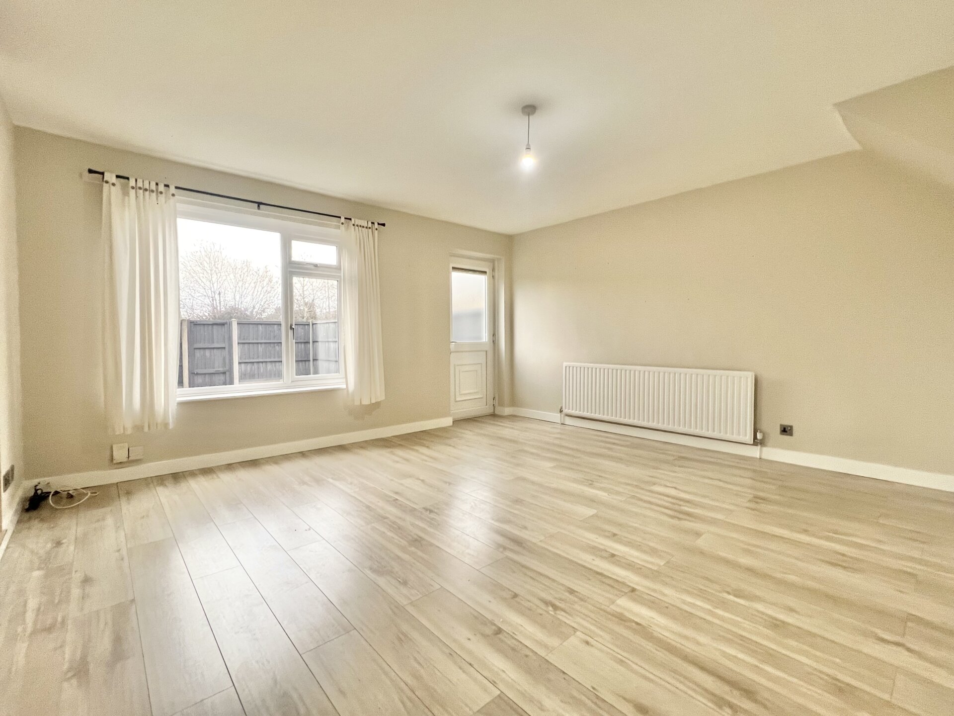 Laminate floor, radiator x2, UPVC double glazed window and rear exit door and understairs storage cupboard.